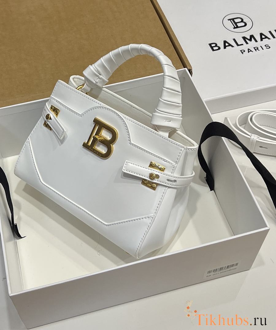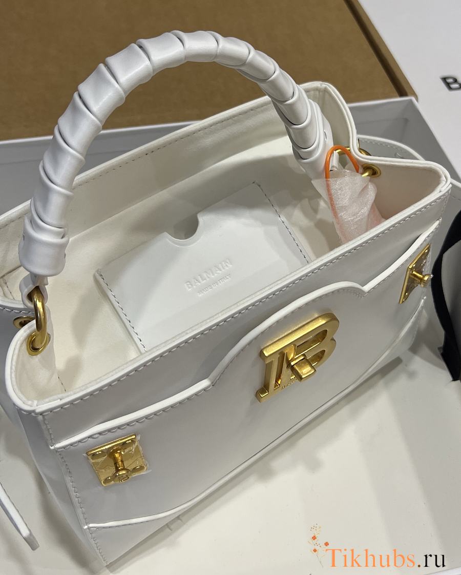 Balmain White Leather Bbuzz 22 Bag 22x17x11cm