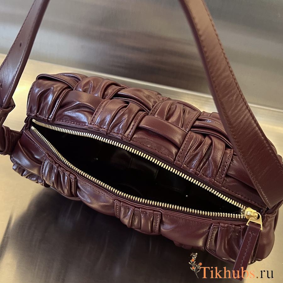 Bottega Veneta Brick Cassette Shoulder Bag Red Wine 28x14x10cm