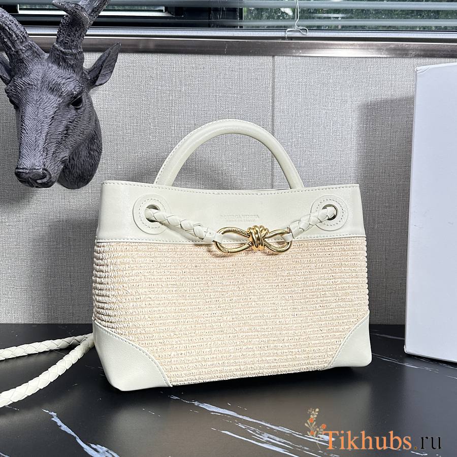 Bottega Veneta Small Andiamo White Raffia Bag 25x20x10cm