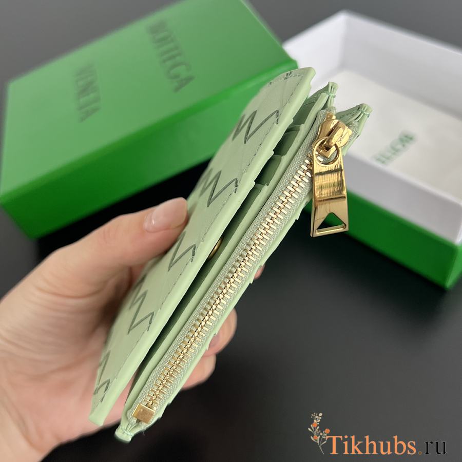 Bottega Veneta Small Bi-Fold Zip Wallet Green 11.5x9cm