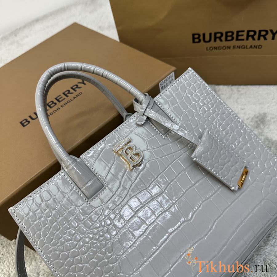 Burberry Embossed Leather Mini Frances Bag Grey 27 x 11 x 20 cm