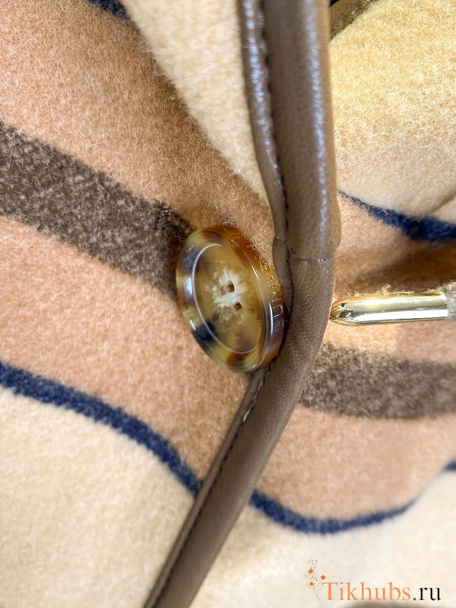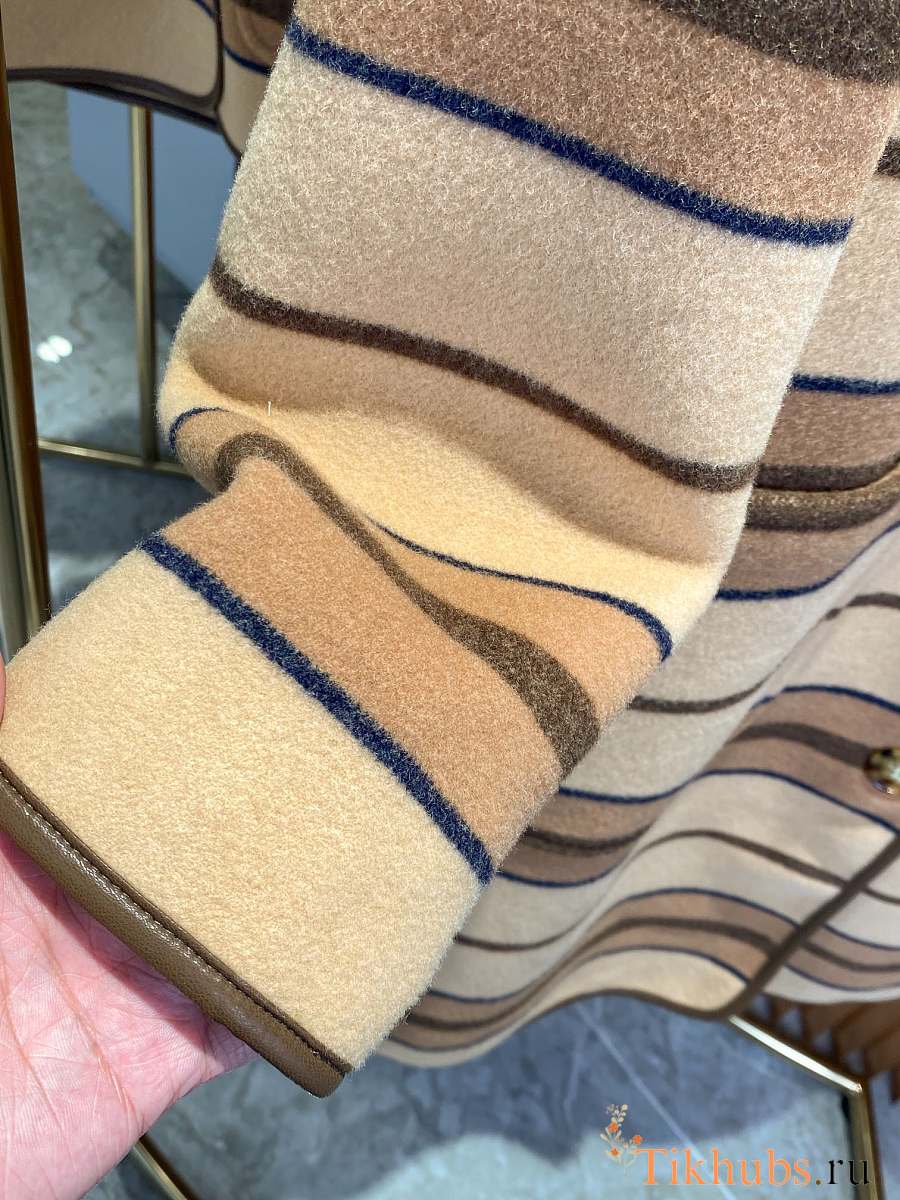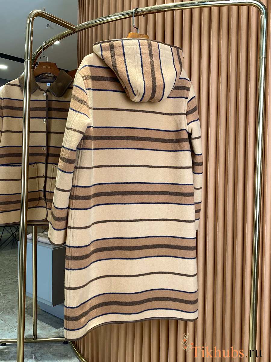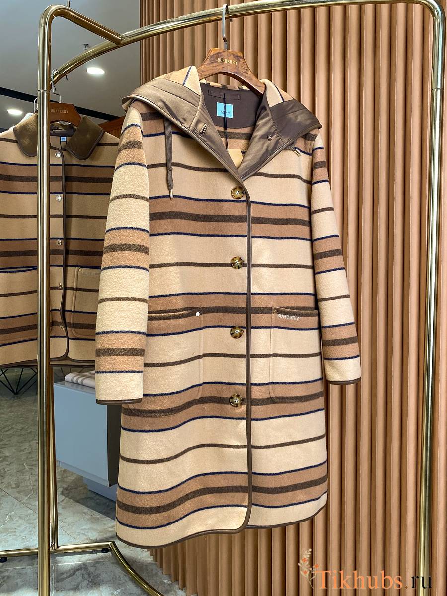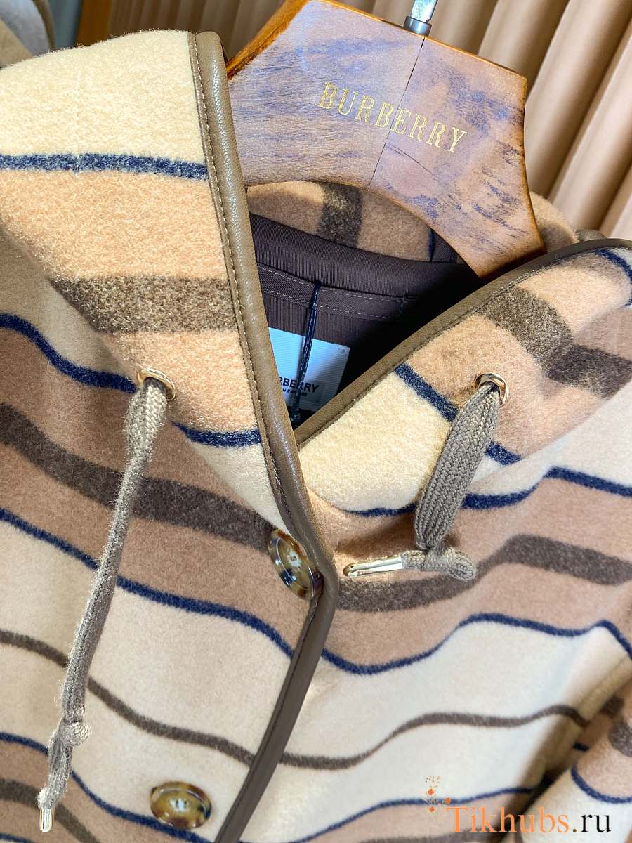Burberry Hooded Striped Leather-Trimmed Wool Coat.