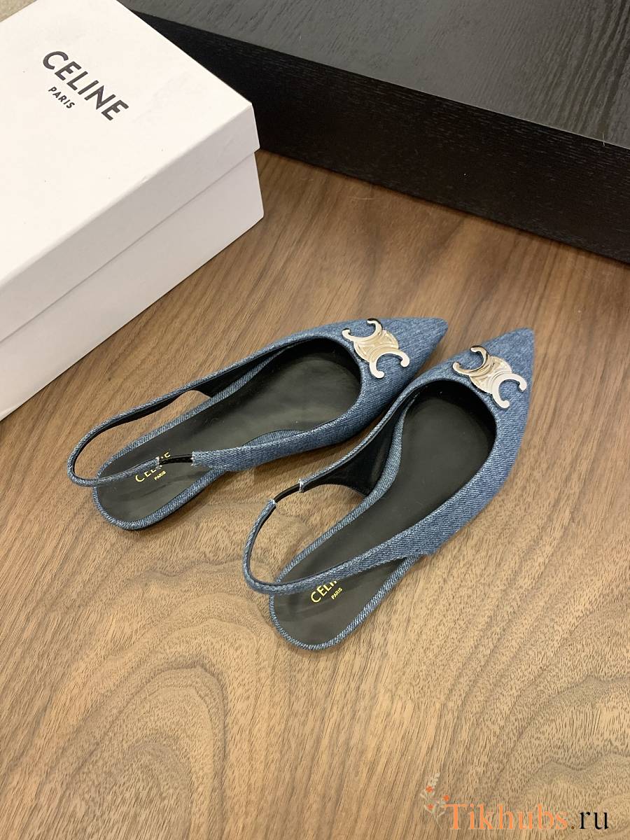 Celine Alma Flat Slingbacks Denim