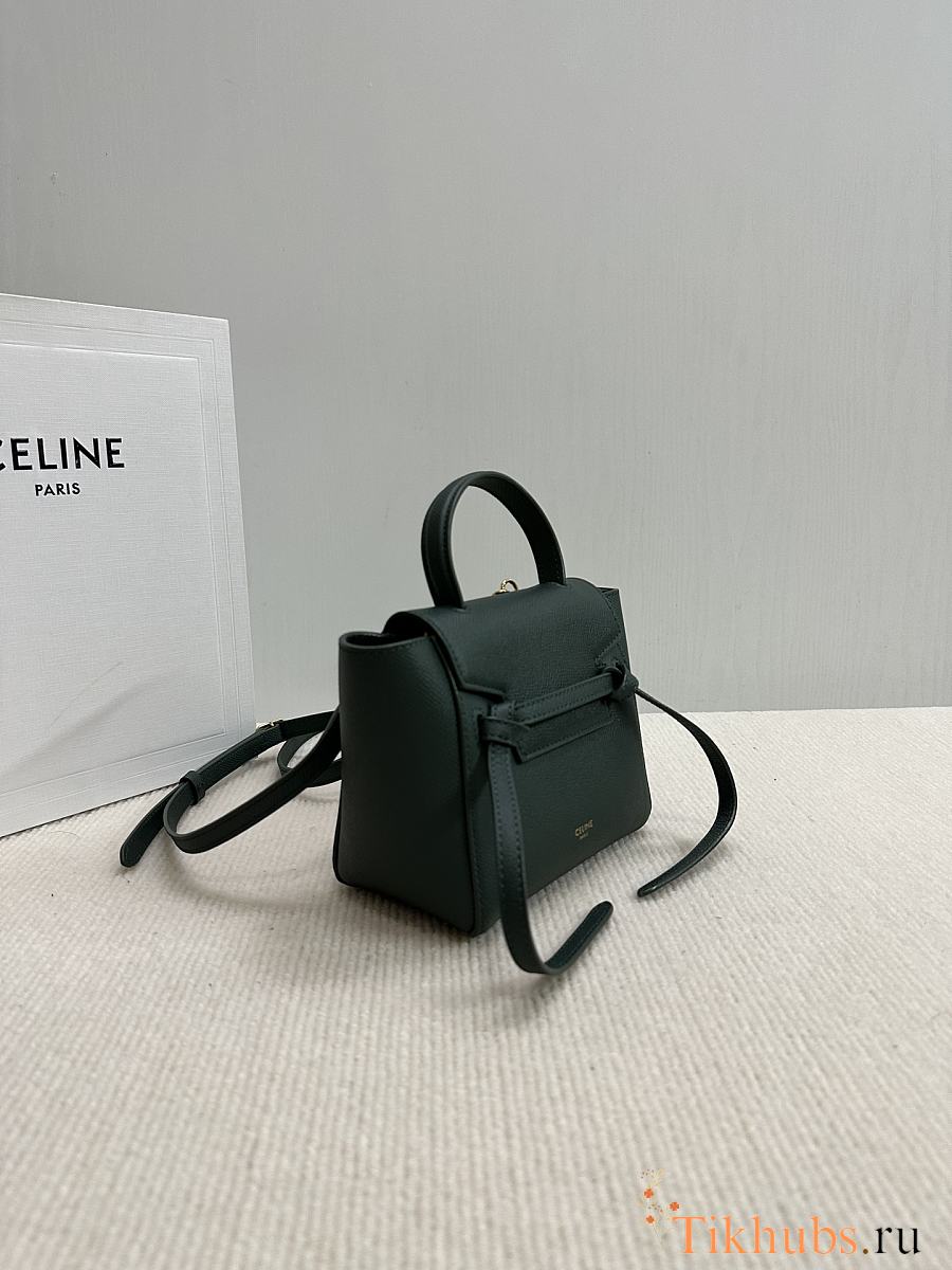 Celine Belt Pico Bag Green Grained Calfskin 16x21x8cm