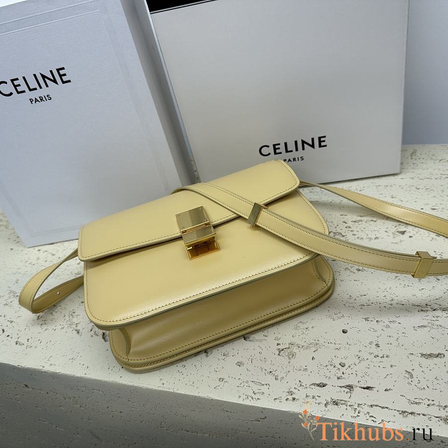Celine Calfskin Box Crossbody Bag Light Yellow 24x7x18cm