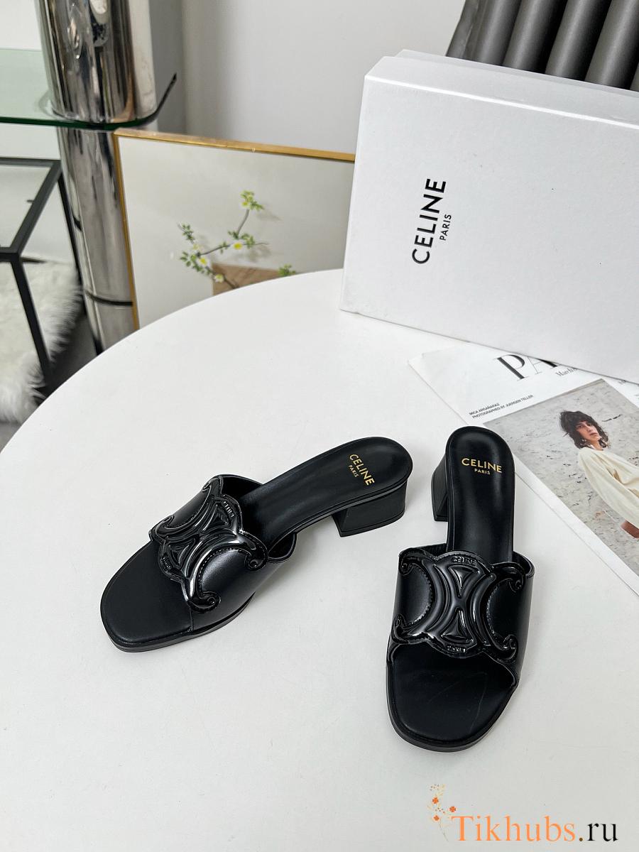 Celine Clemence Mule Lambskin Black Heel 4cm