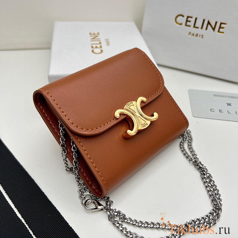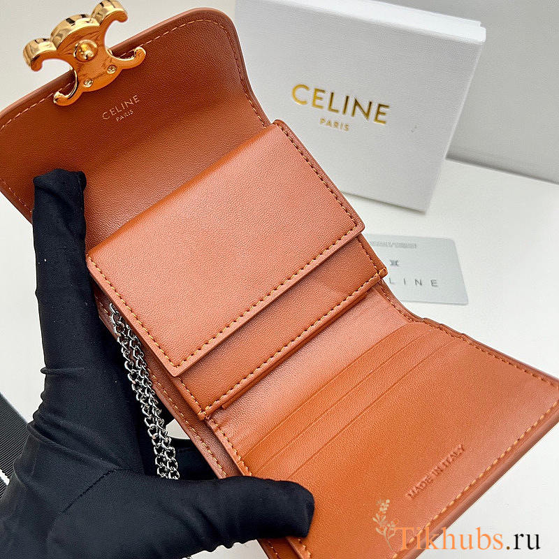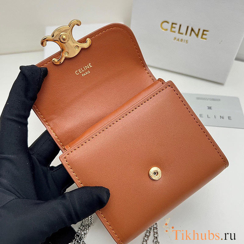 Celine Flap Wallet Triomphe Smooth Lambskin Tan 11x10x5cm