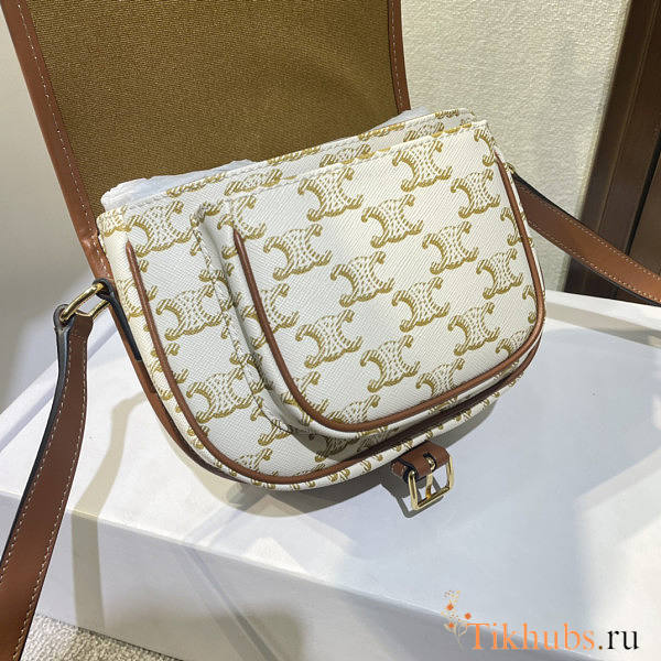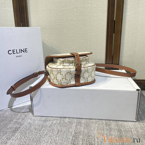 Celine Medium Folco Bag Triomphe Canvas Calfskin White 18.5x17x7cm