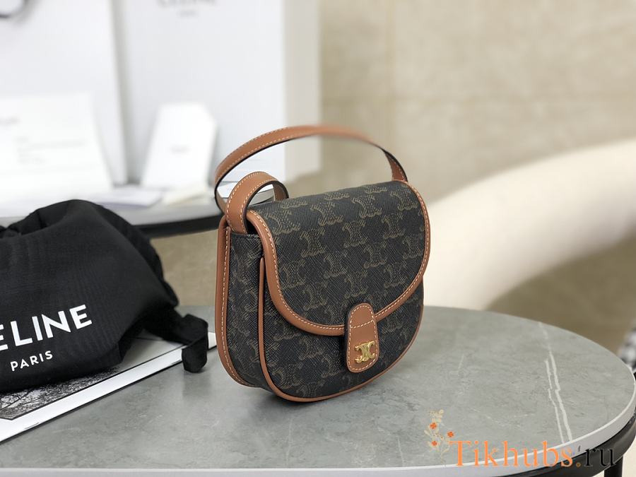 Celine Mini Besace Triomphe Canvas Calfskin 15x11x4cm