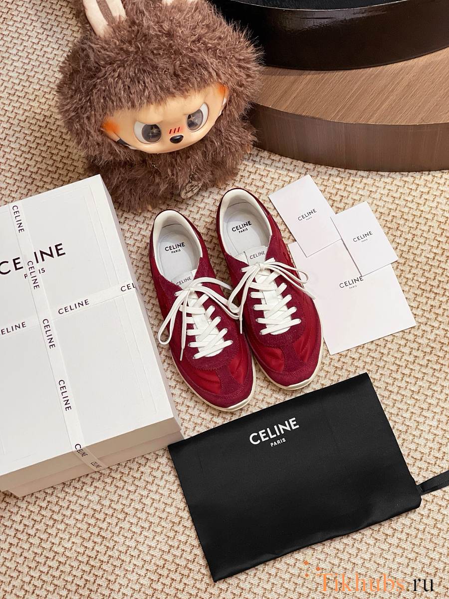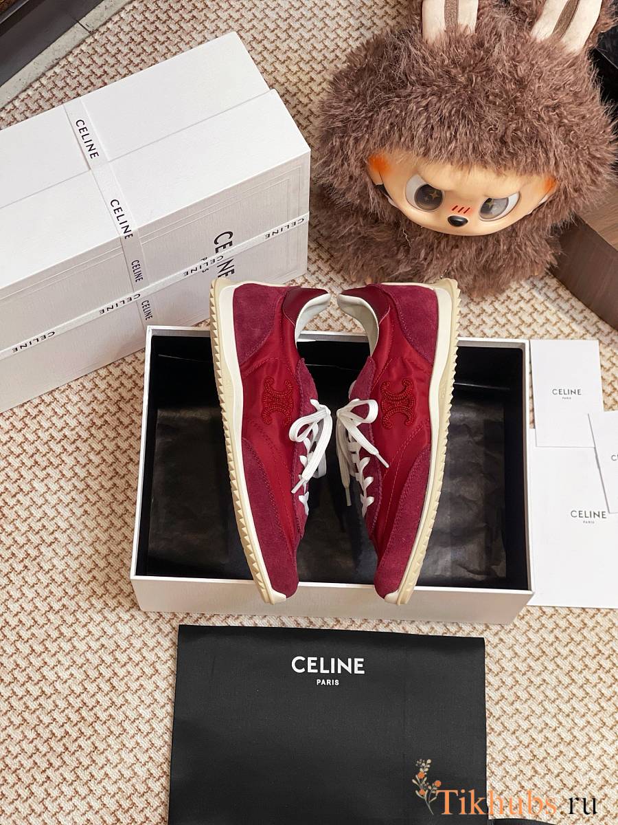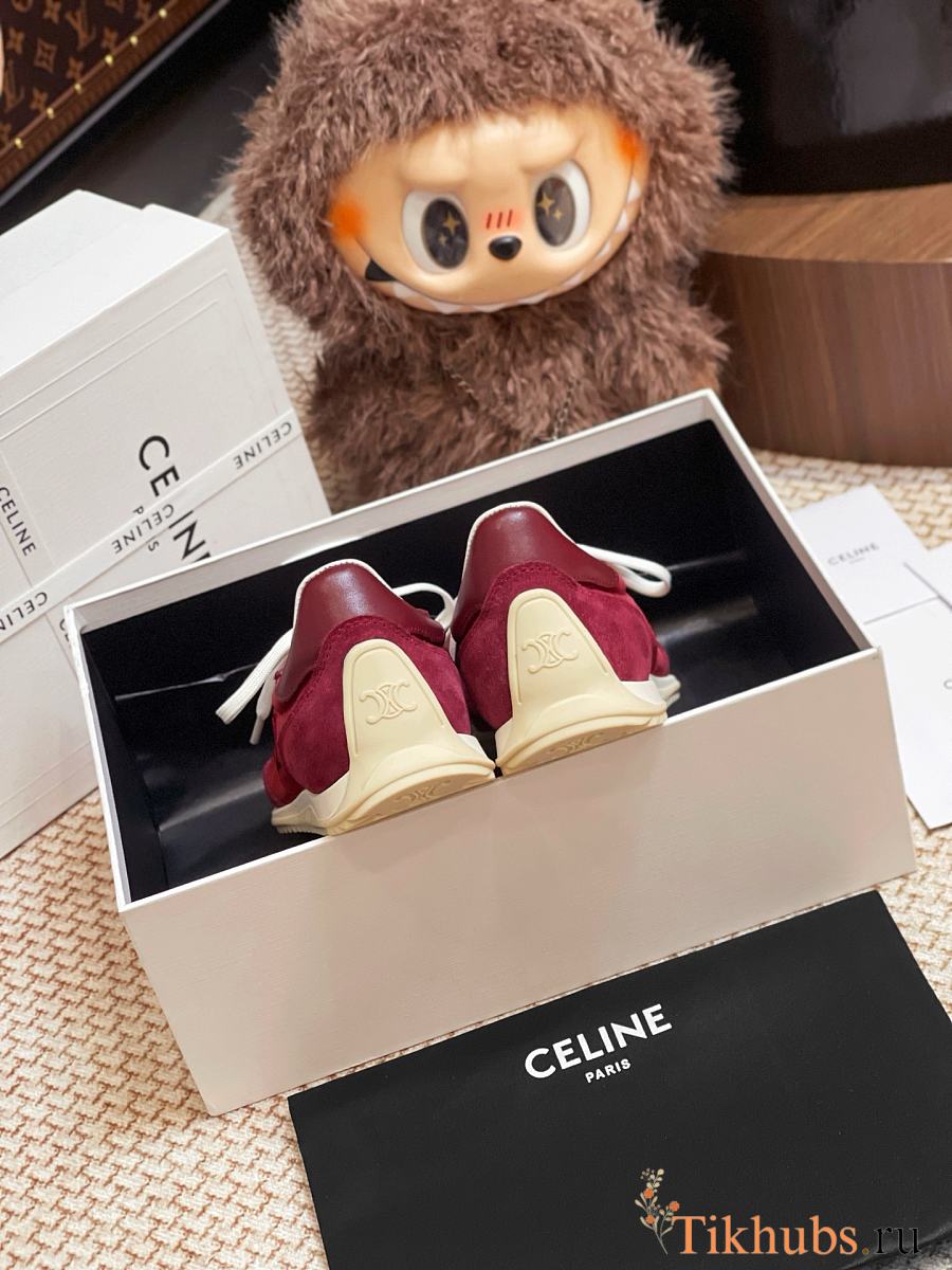 Celine Racer Low Top Sneaker Burgundy Suede