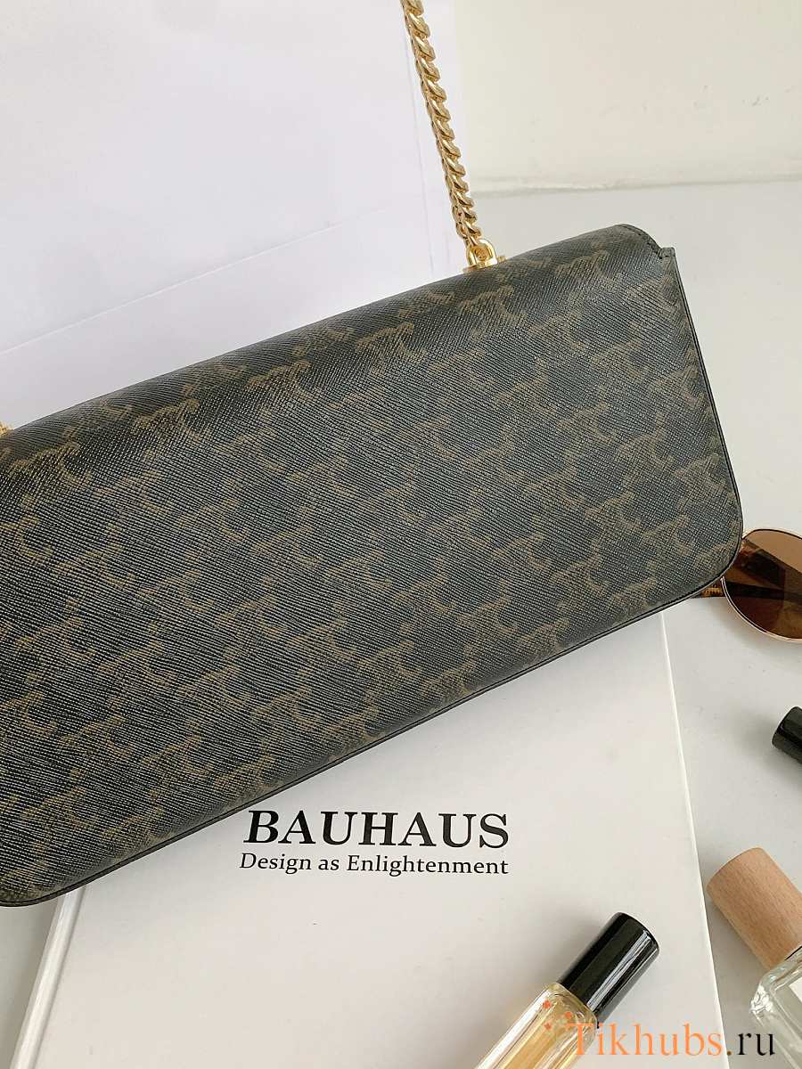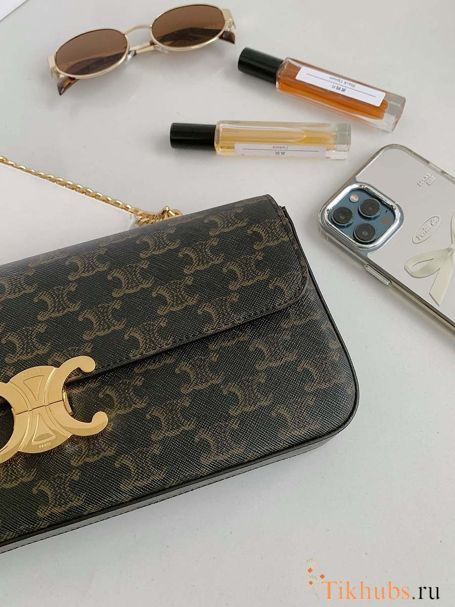 Celine Triomphe Cuir Black Canvas Chain Shoulder Bag 30x14x4cm