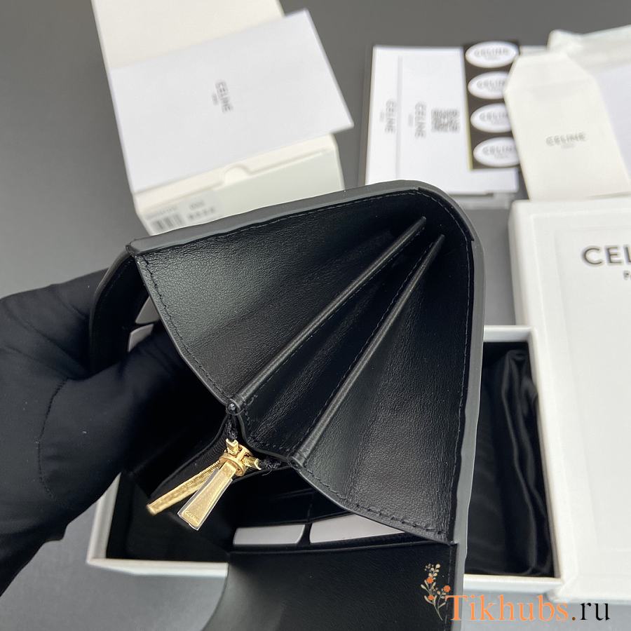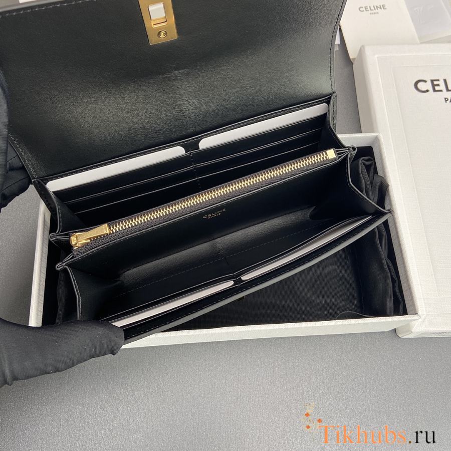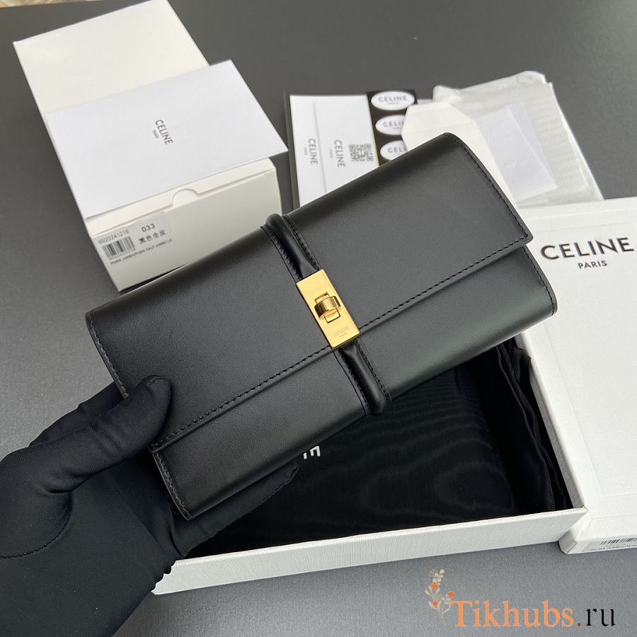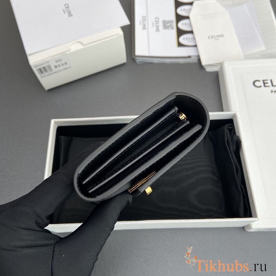 Celine Wallet 16 Satinated Calfskin Black 19x10x4cm