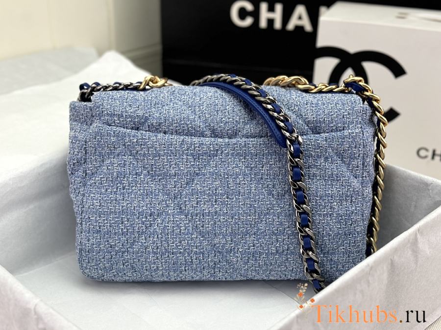Chanel 19 Flap Bag Blue Tweed Gold 30cm