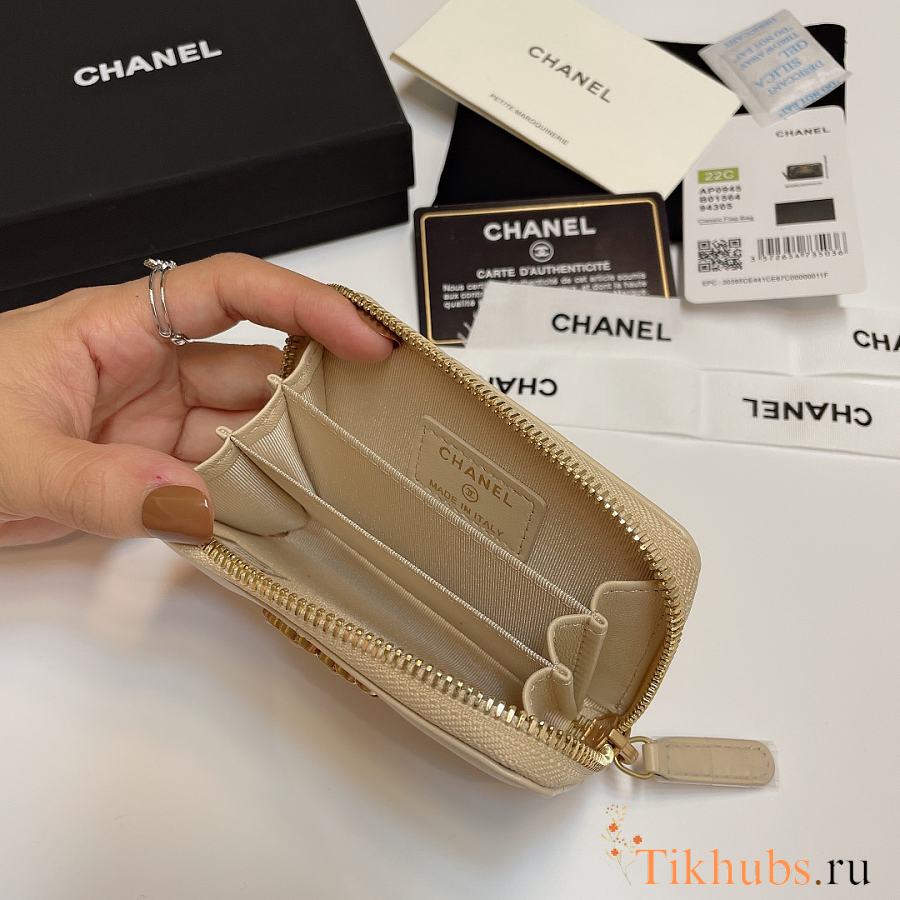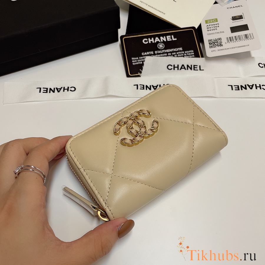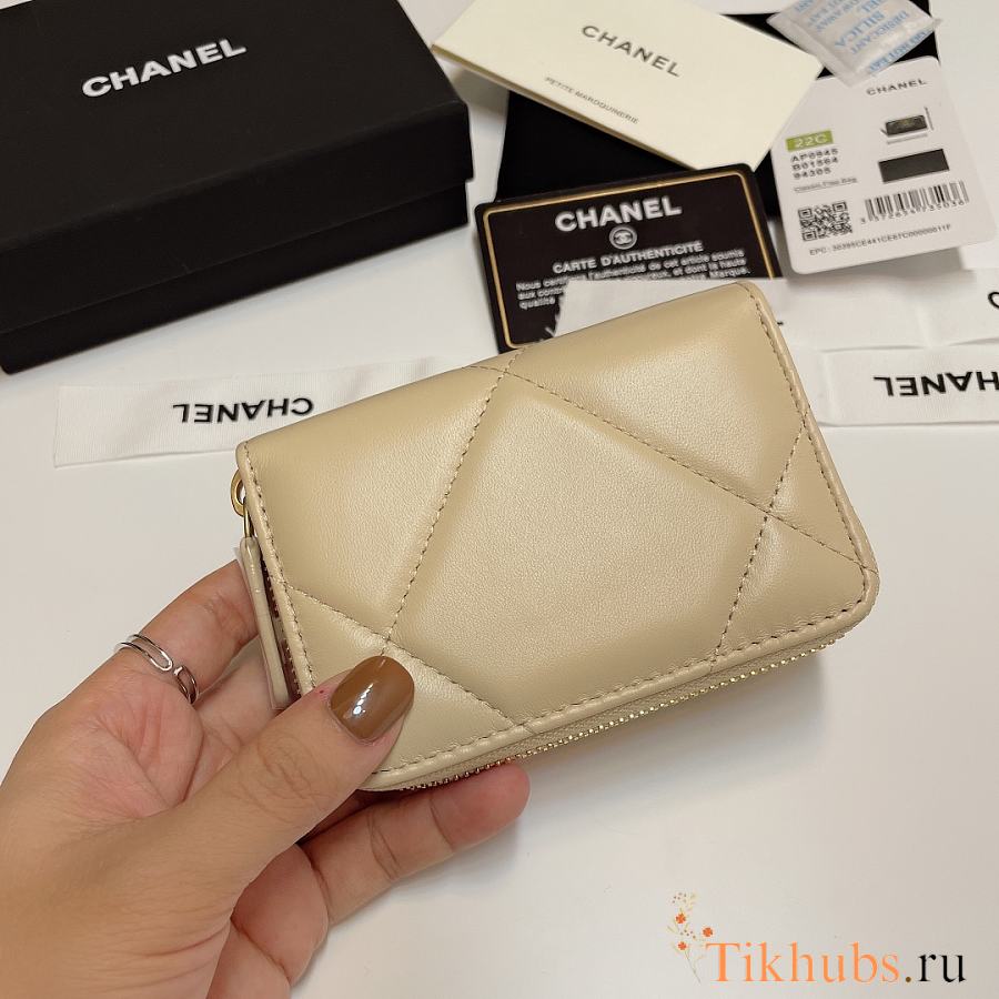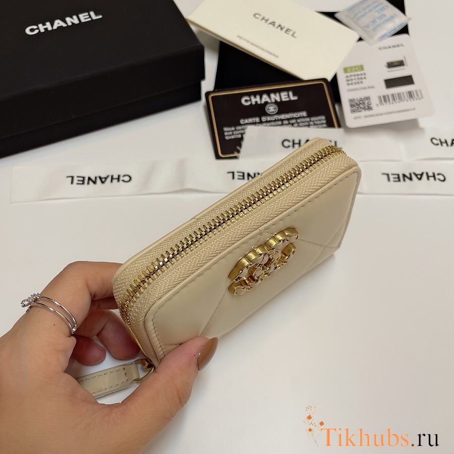 Chanel 19 Zip Coin Beige Lambskin 11.5x8cm