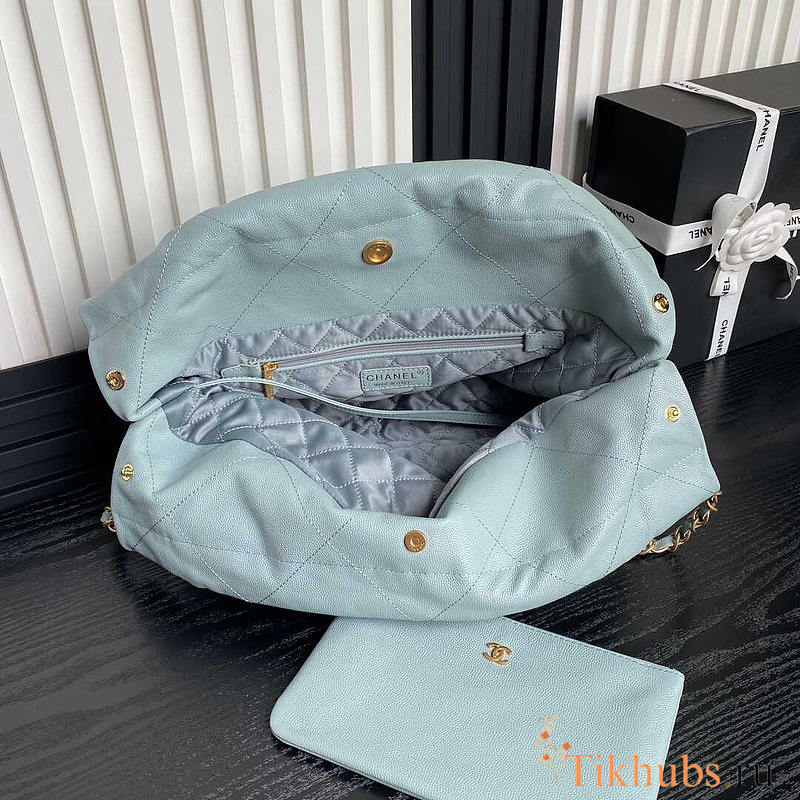 Chanel 22 Handbag Blue Calfskin Gold 39x42x8cm