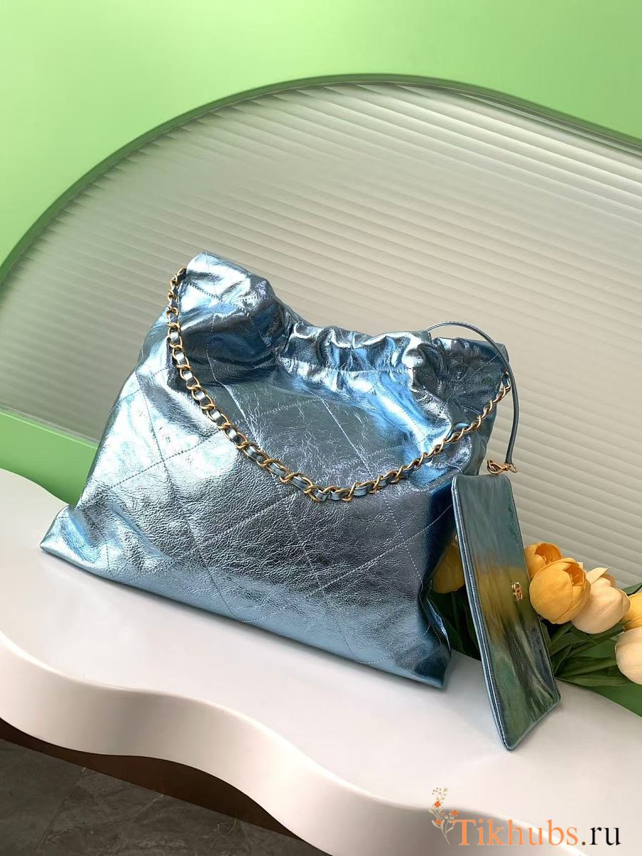 Chanel 22 Handbag Blue Metallic 35x37x7cm