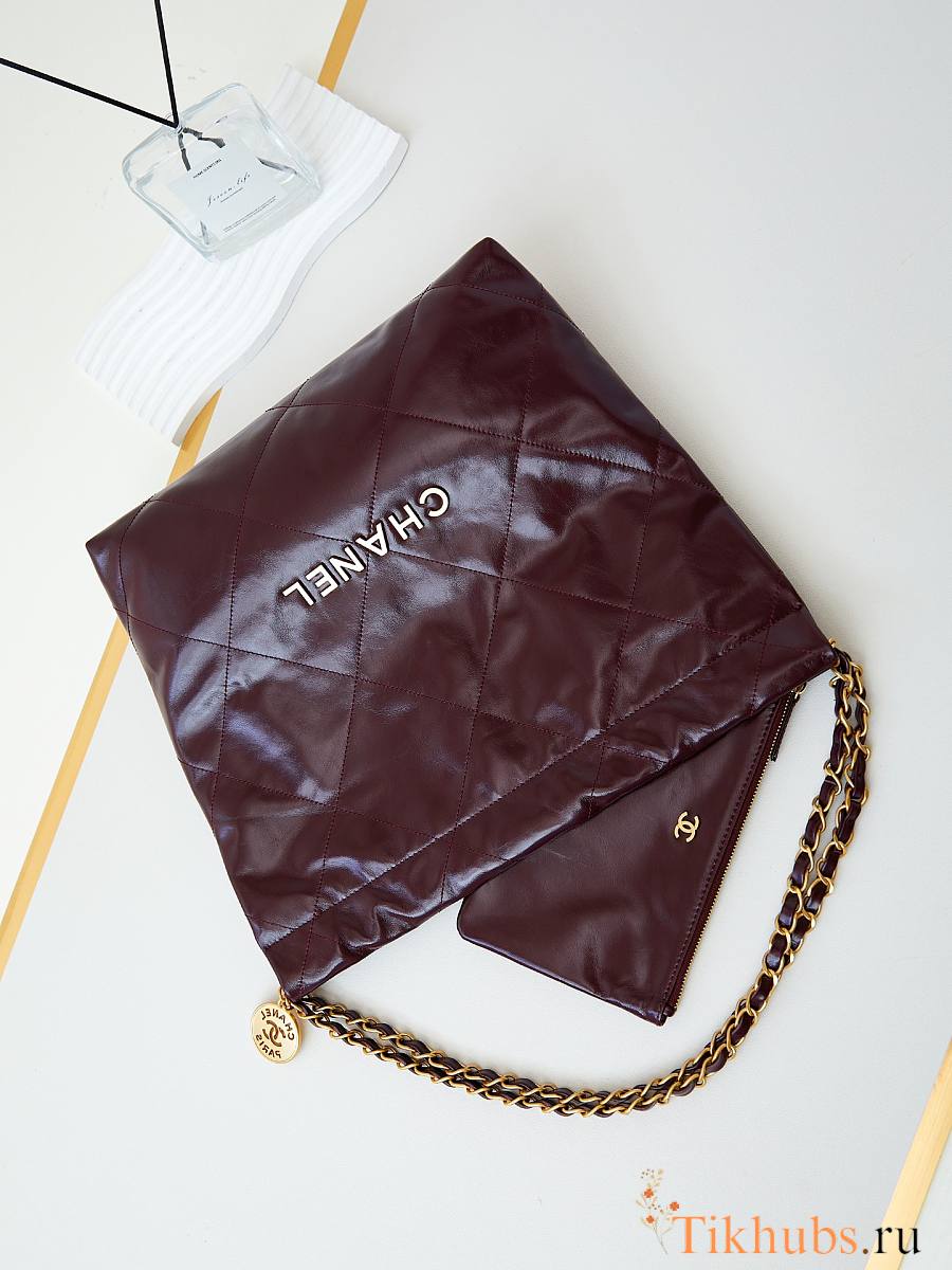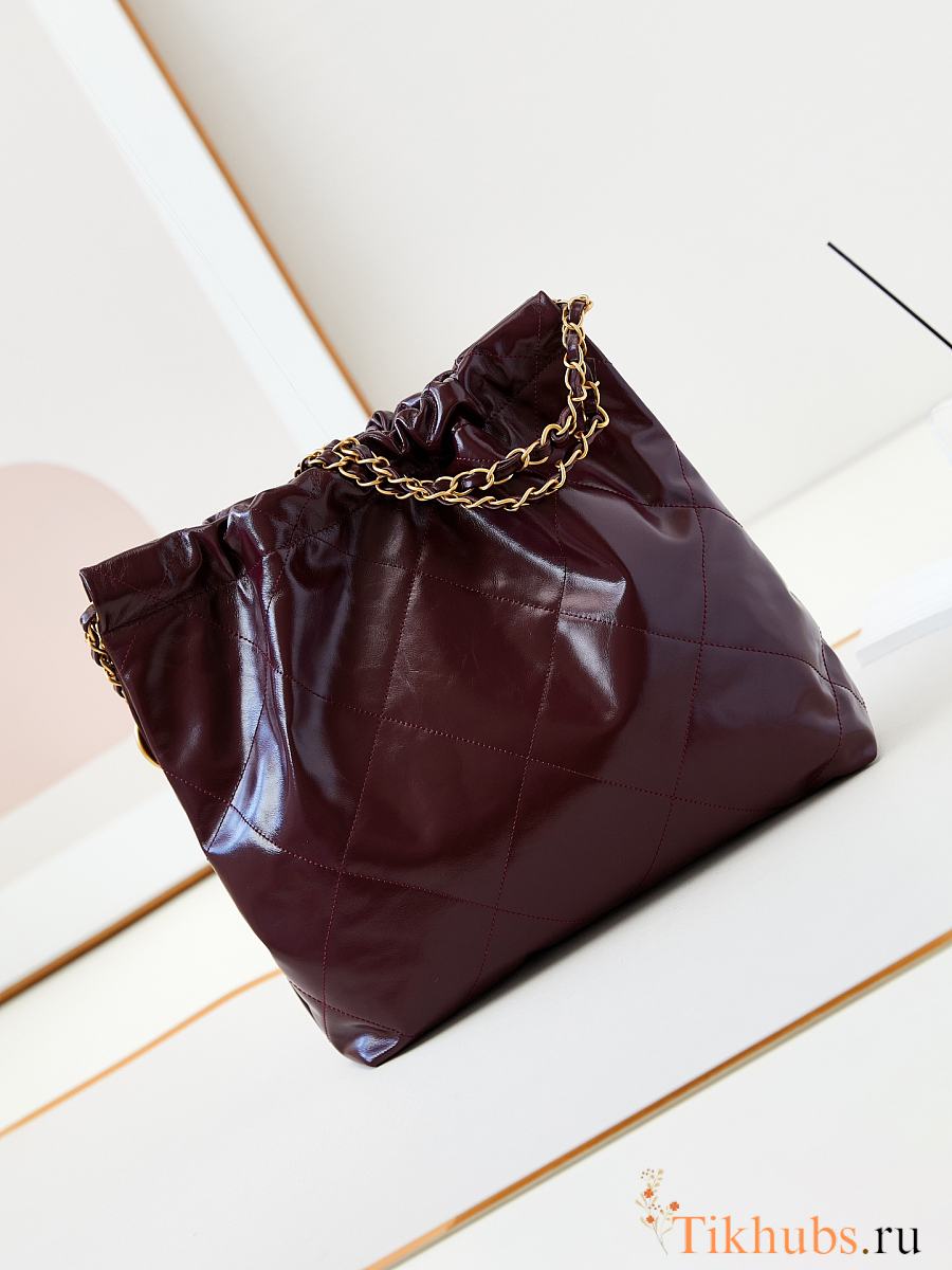 Chanel 22 Handbag Red Wine Gold 35x37x7cm