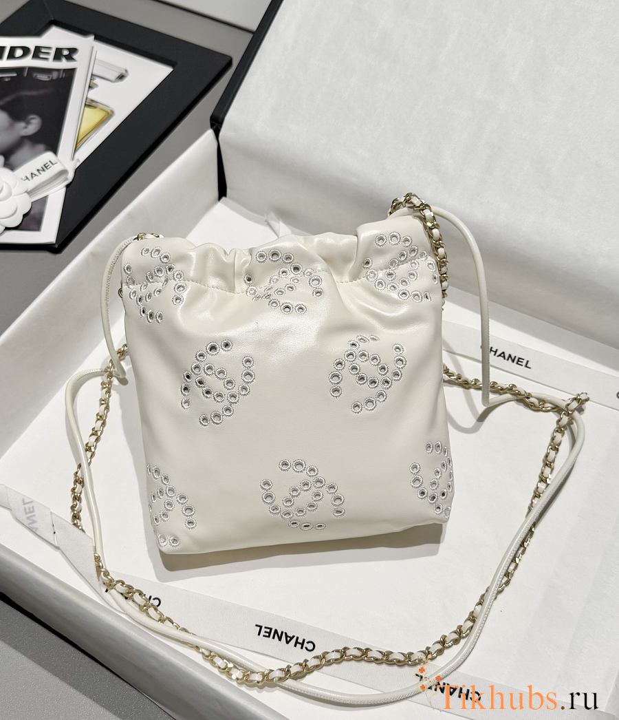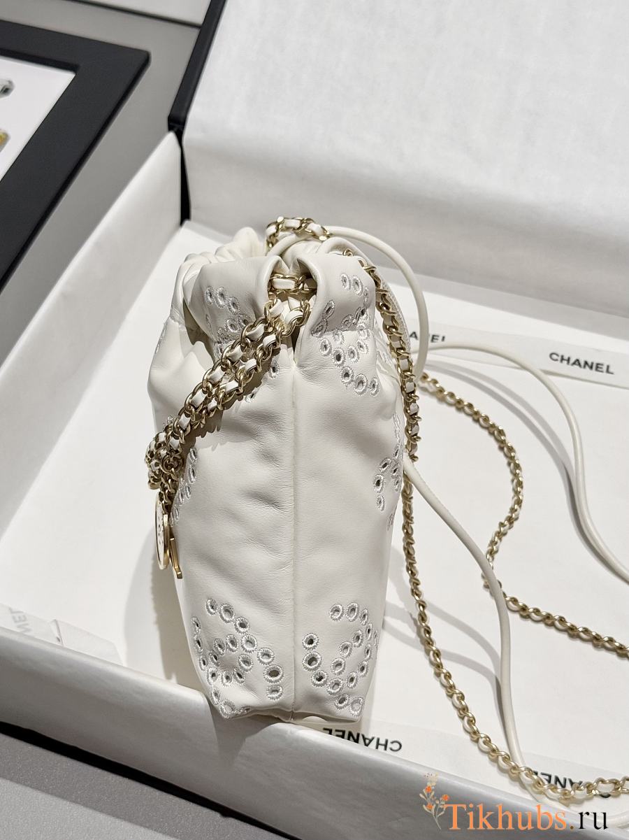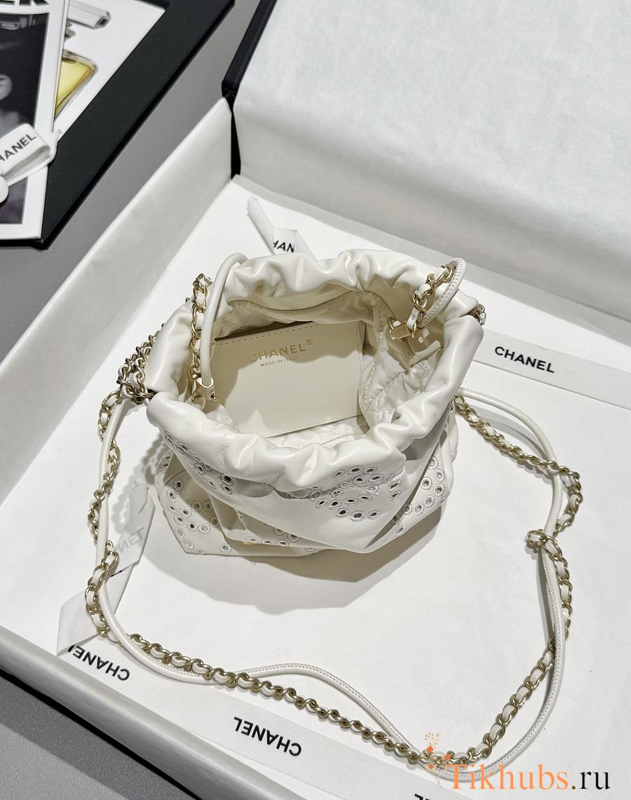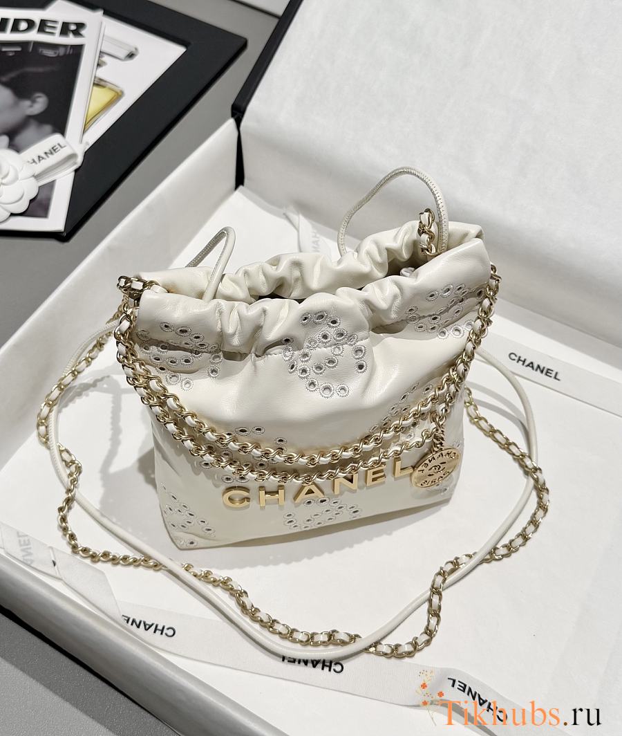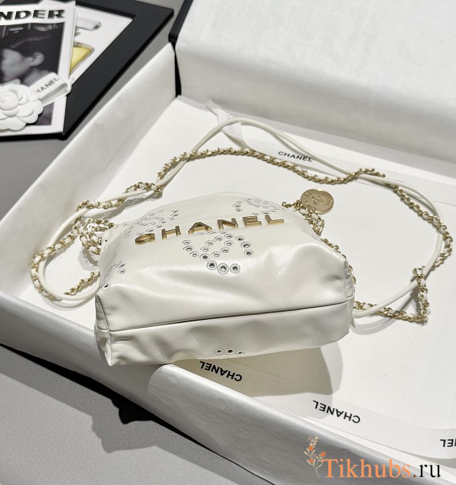 Chanel 22 Mini Handbag Calfskin Gold White 23x18.5x6cm