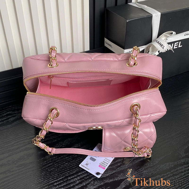 Chanel 24A Shiny Calfskin Shouder Bag Pink 29x19x13cm