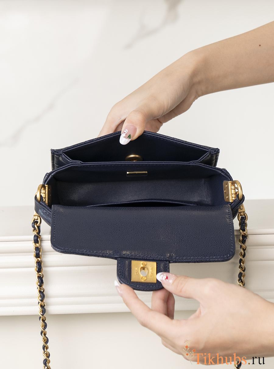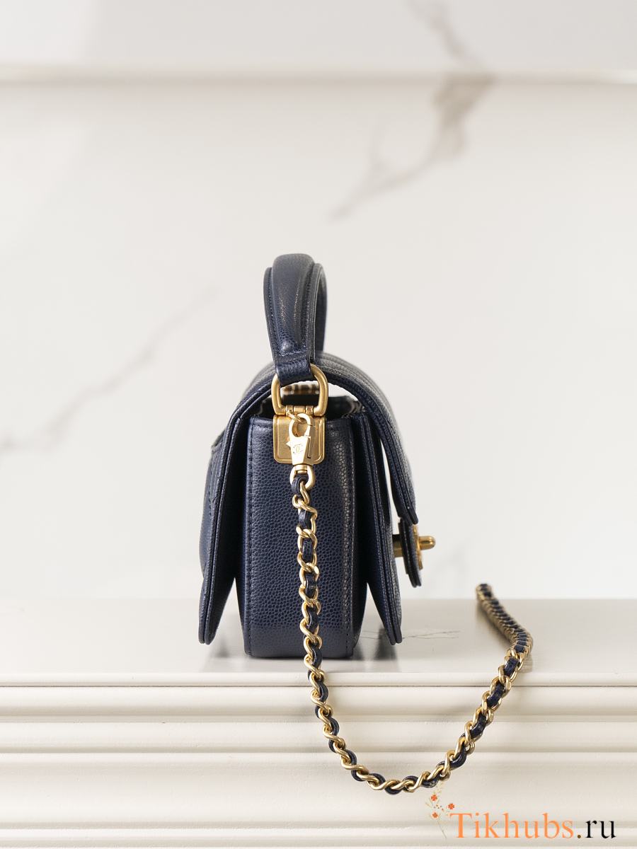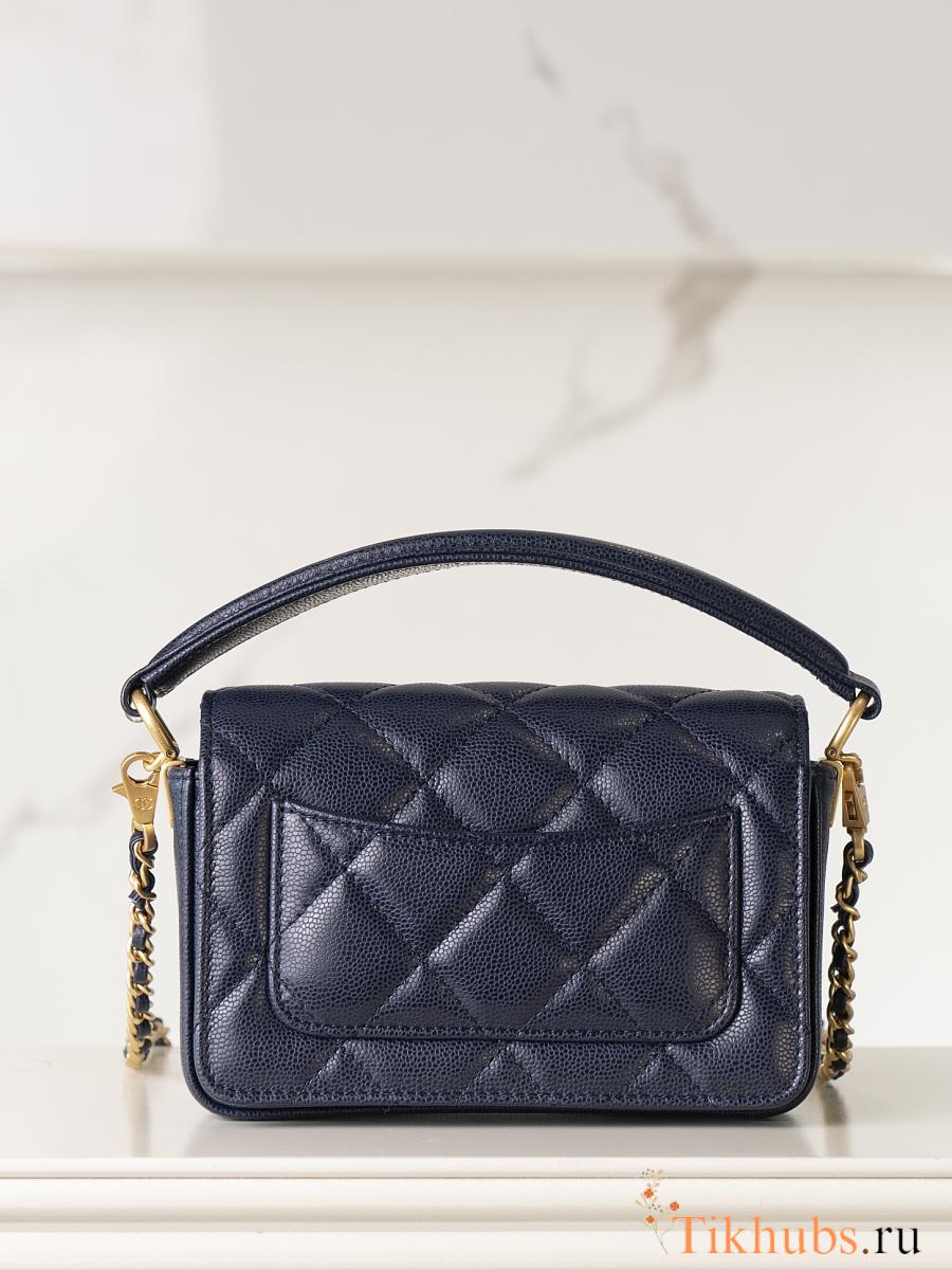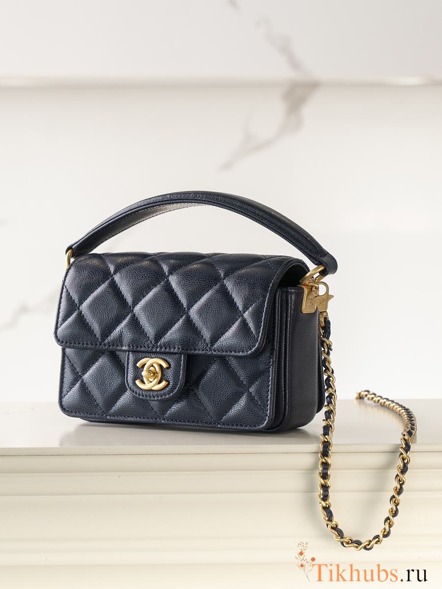Chanel 24k Flap Bag Top Navy Blue Caviar Gold 16x11x4cm