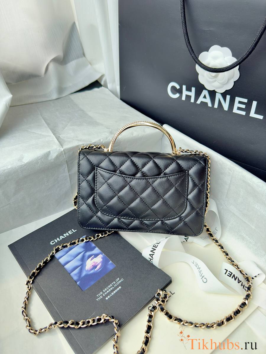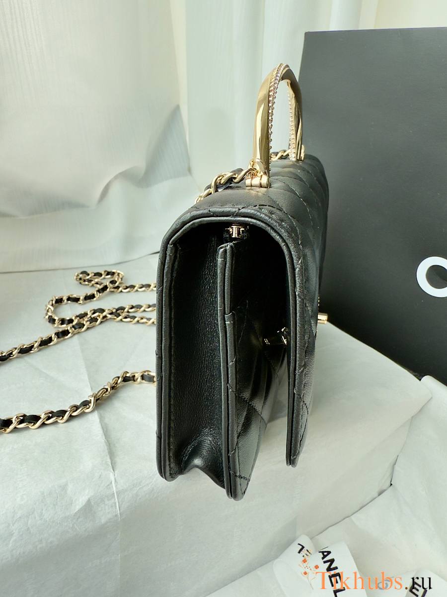 Chanel 24k Top Handle Wallet On Chain Black Lambskin 19cm