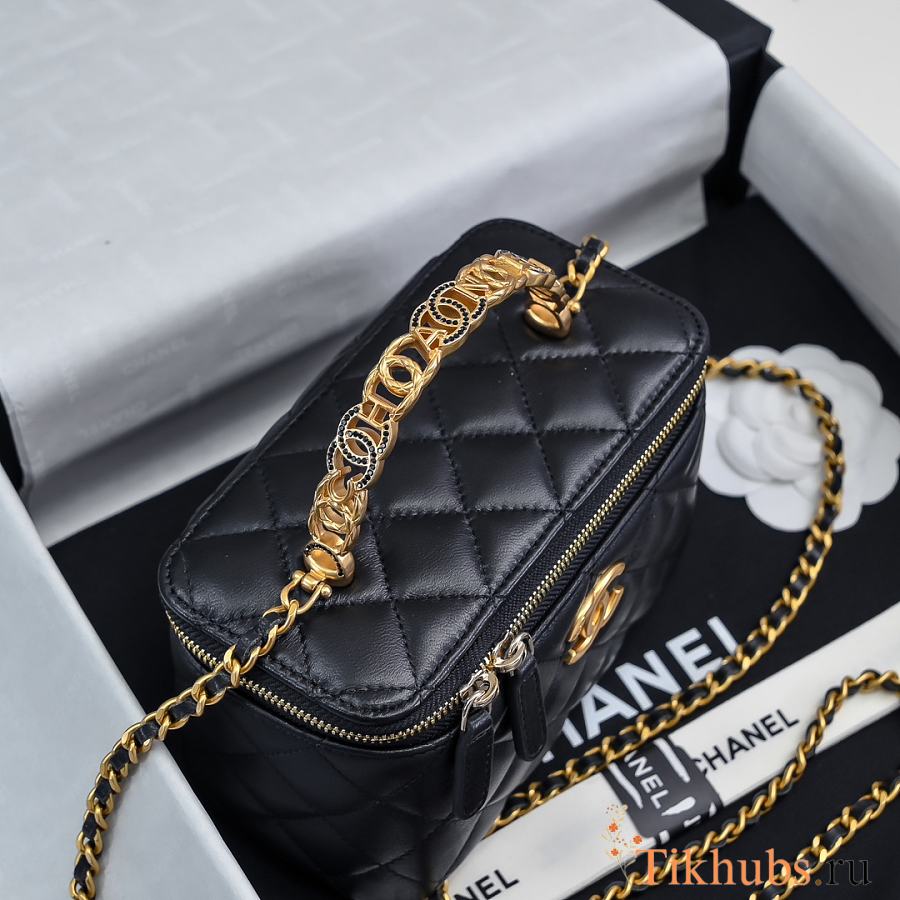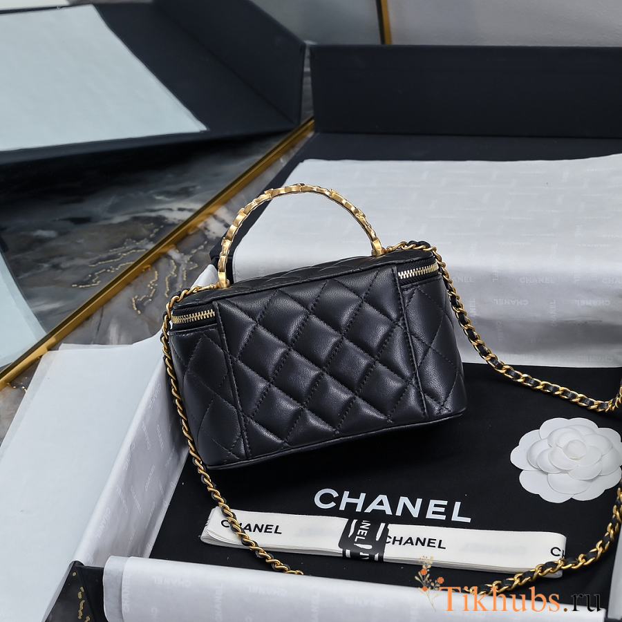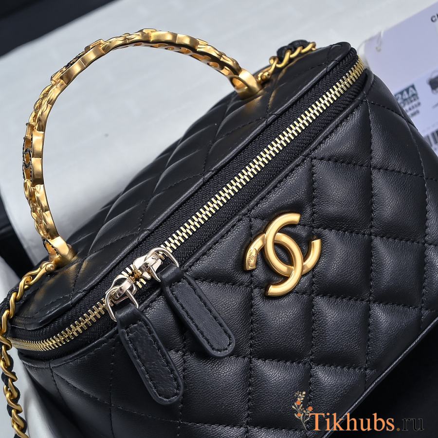 Chanel 24S Top Handle Vanity Case Black Lambskin 16x8x10cm