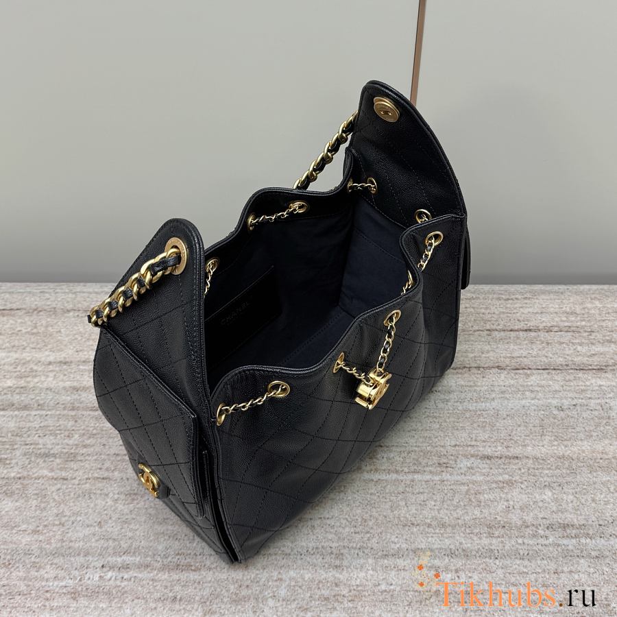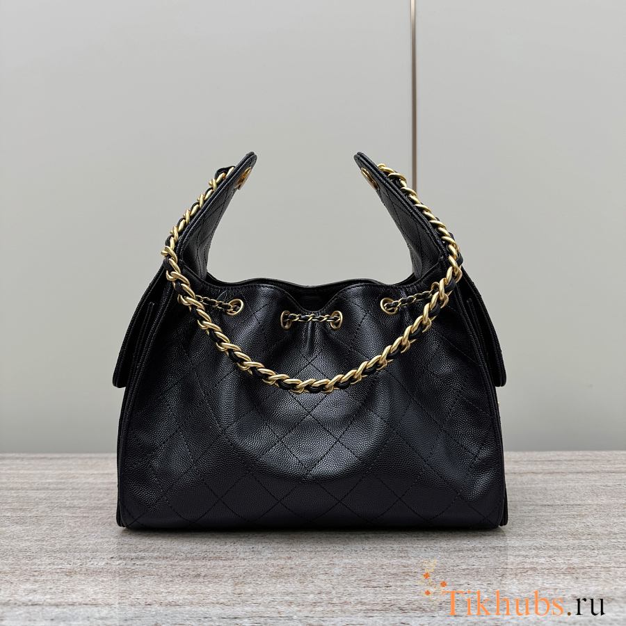 Chanel 25 Small Handbag Black Calfskin Gold 30x26x14cm