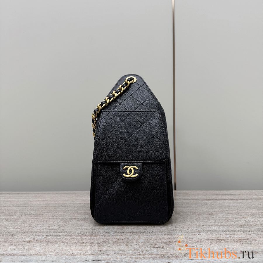 Chanel Black Caviar Leather Phone Holder Crossbody Bag 18x10x2cm