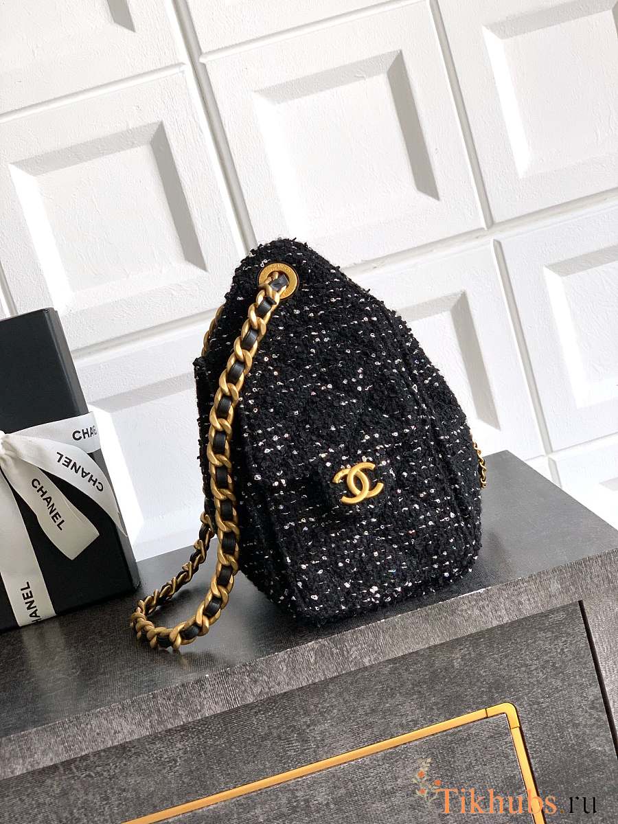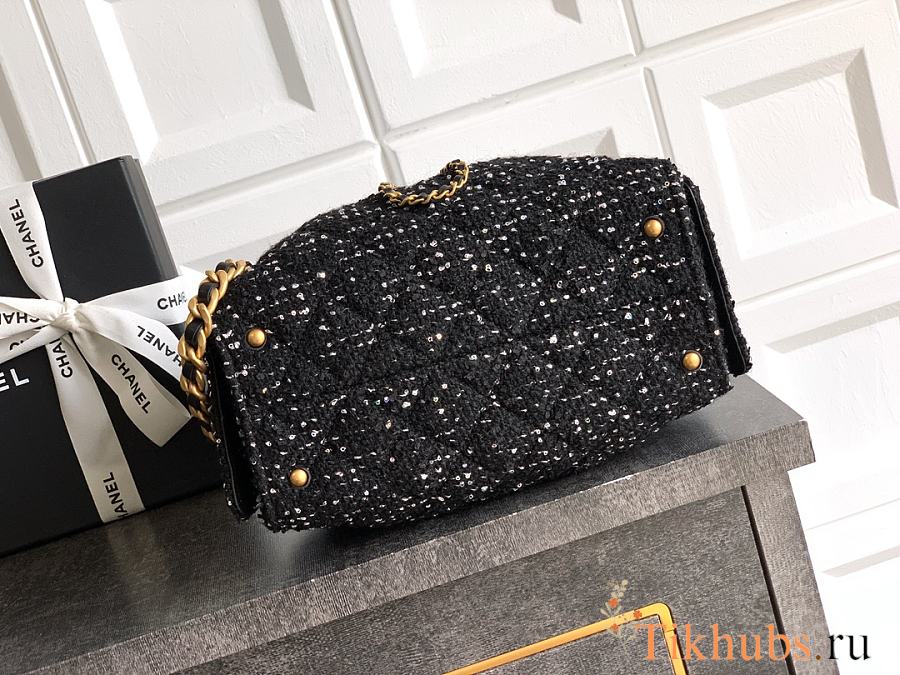 Chanel 25 Small Handbag Black Tweed 30x26x14cm