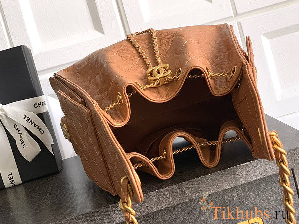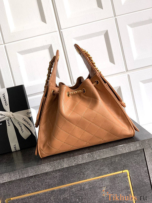Chanel 25 Small Handbag Light Brown Calfskin Gold 30x26x14cm