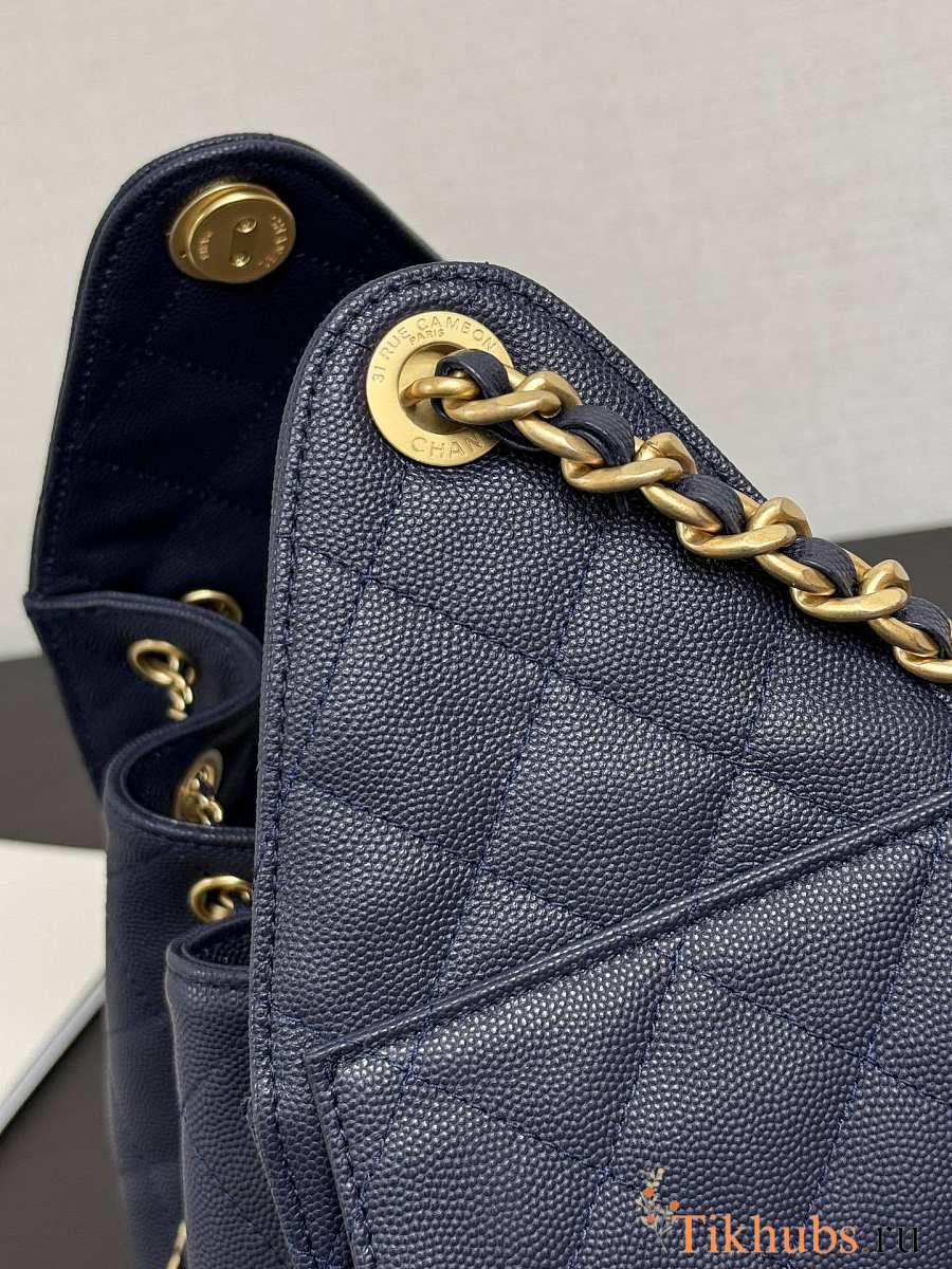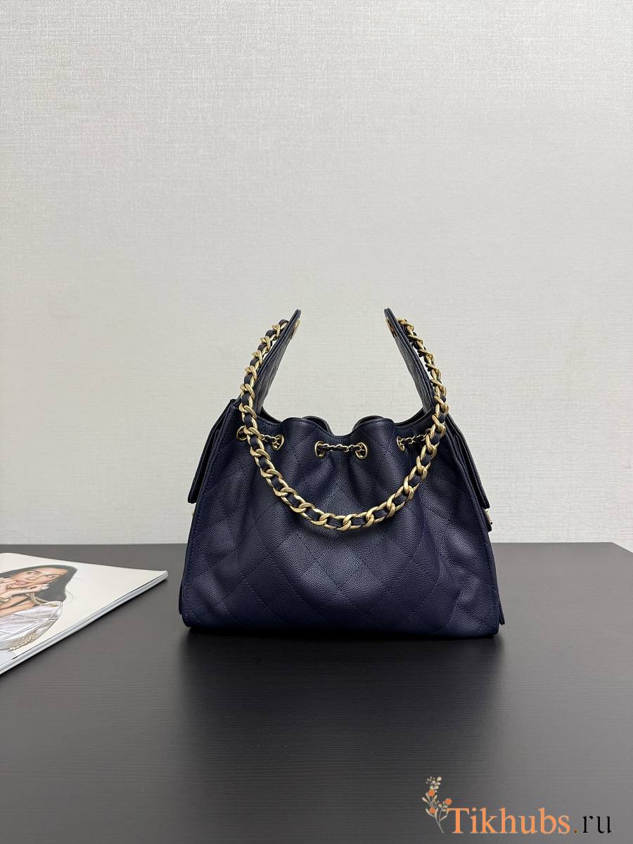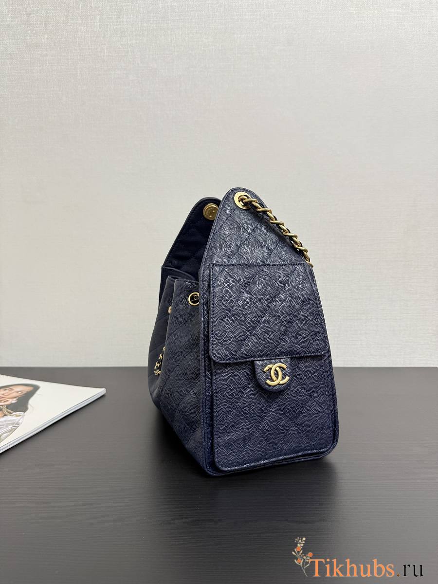 Chanel 25 Small Handbag Navy Blue Calfskin Gold 30x26x14cm