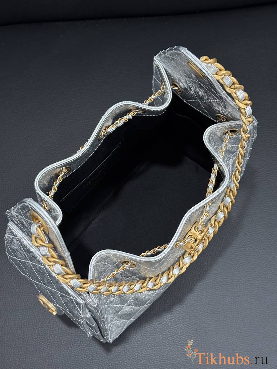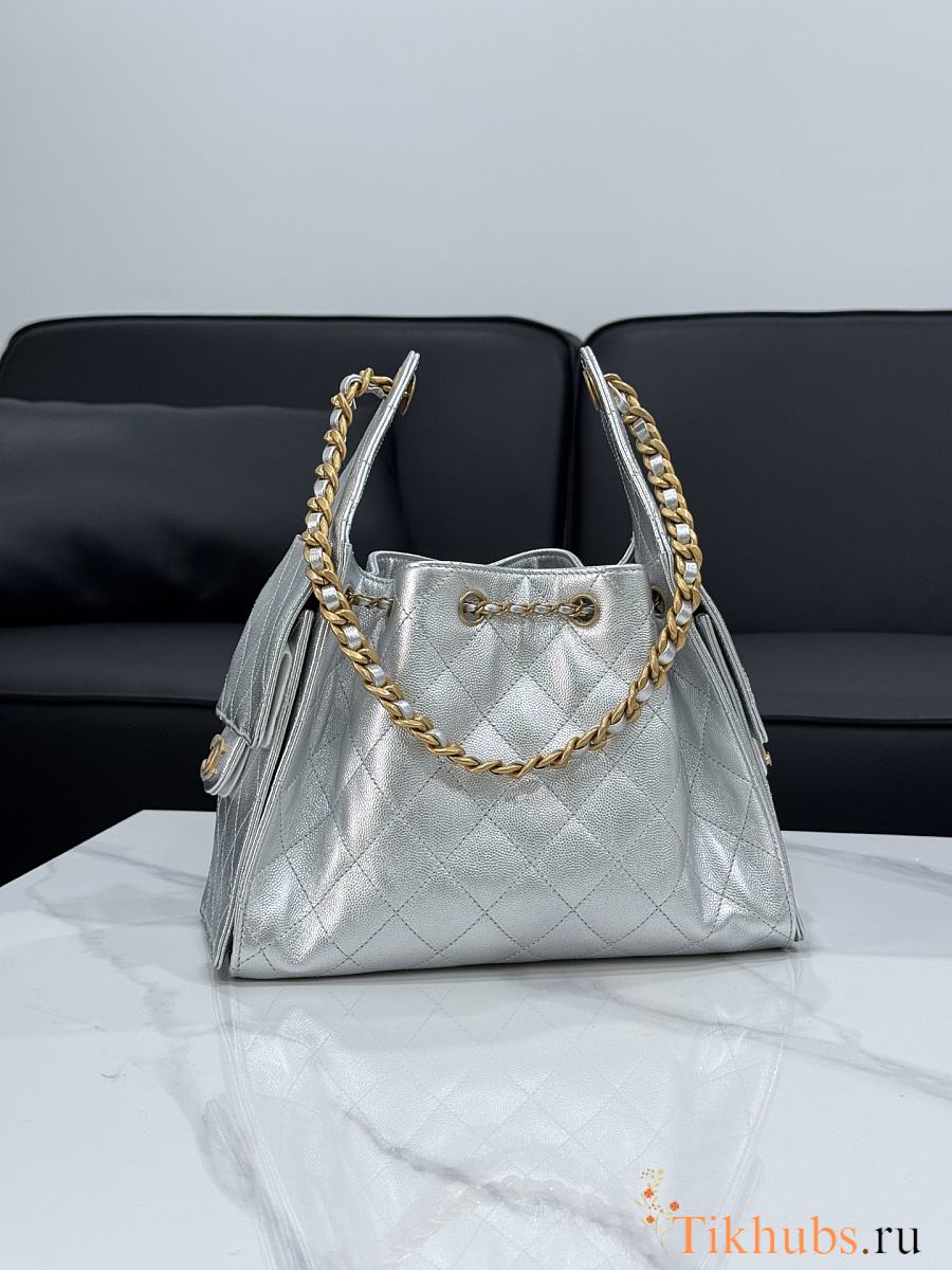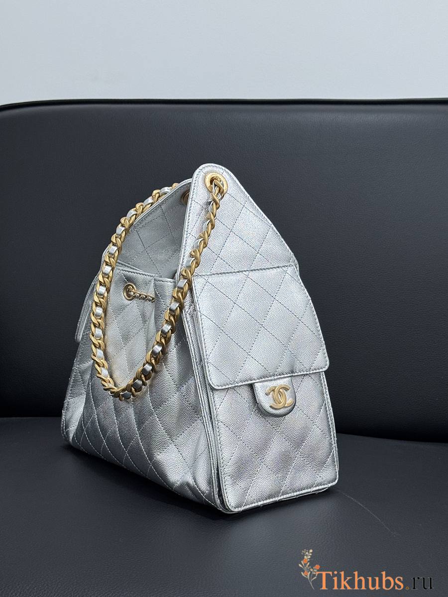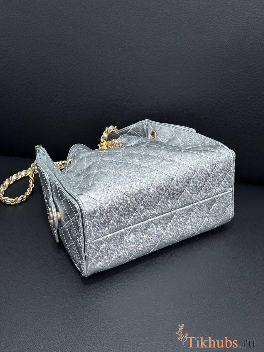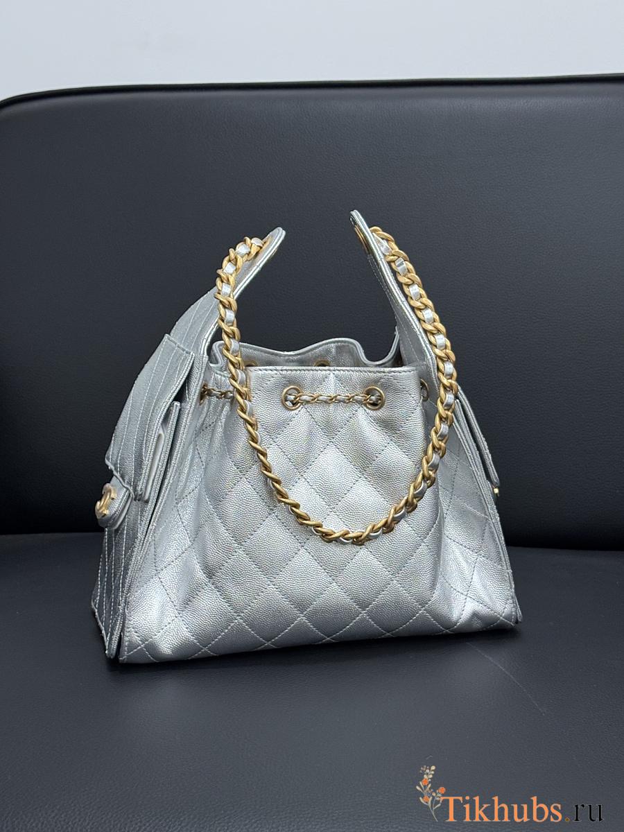 Chanel 25 Small Handbag Silver Calfskin Gold 30x26x14cm