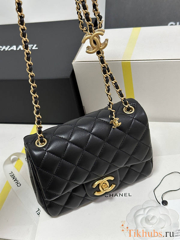 Chanel 25B Flap Bag Black Lambskin Gold 18x13.5x7cm