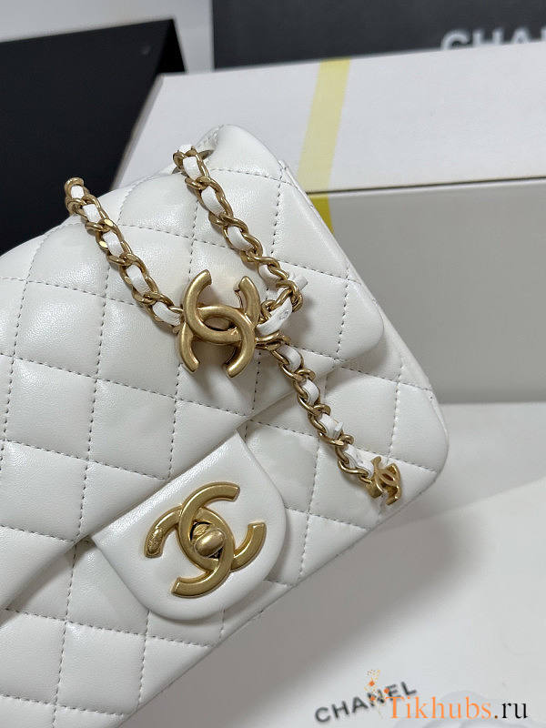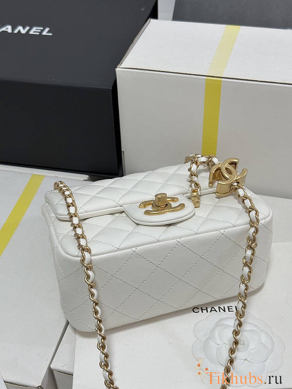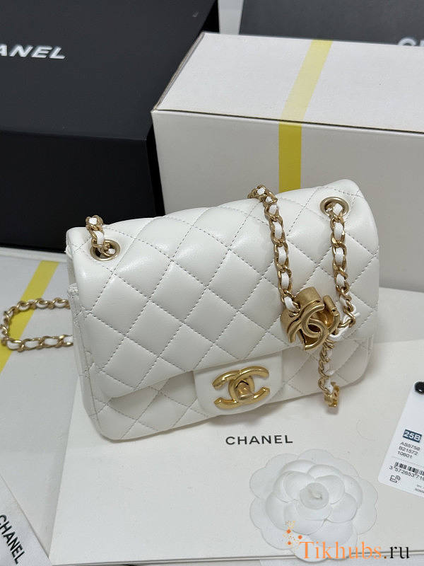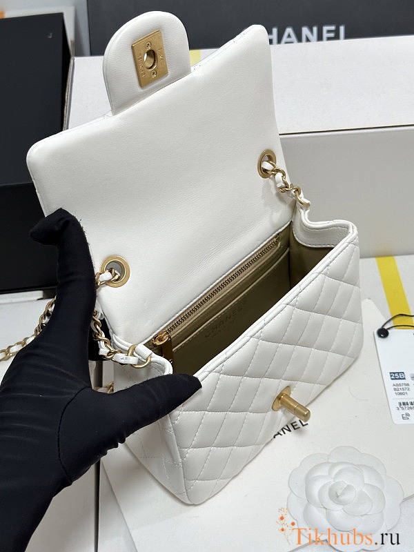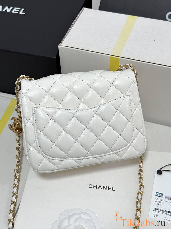 Chanel 25B Flap Bag White Lambskin Gold 18x13.5x7cm