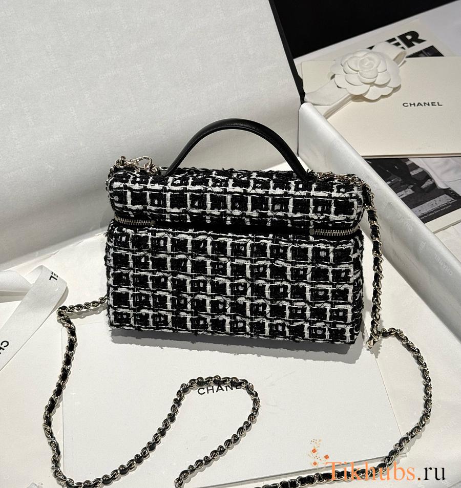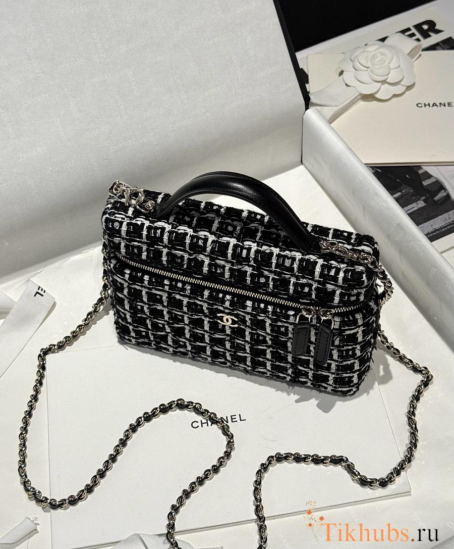 Chanel 25C Vanity Case Black Tweed 17x19.5x5.5cm
