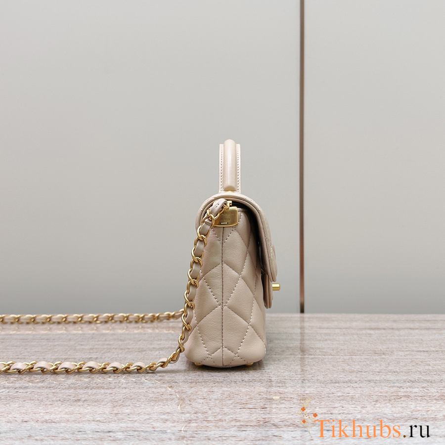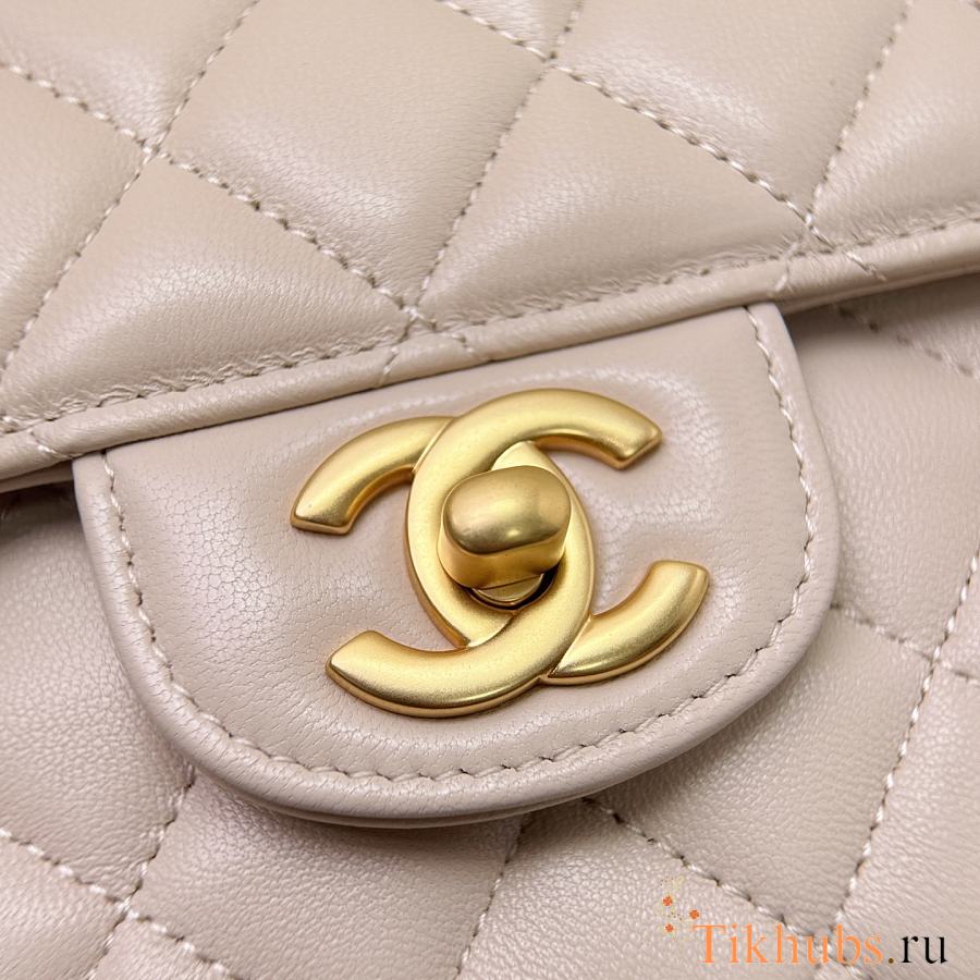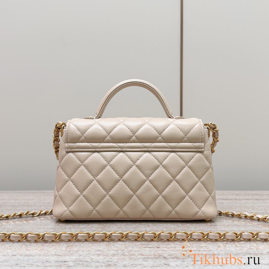 Chanel 25P Top Handle Bag Beige Gold Lambskin 20x14x6cm