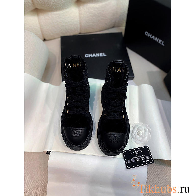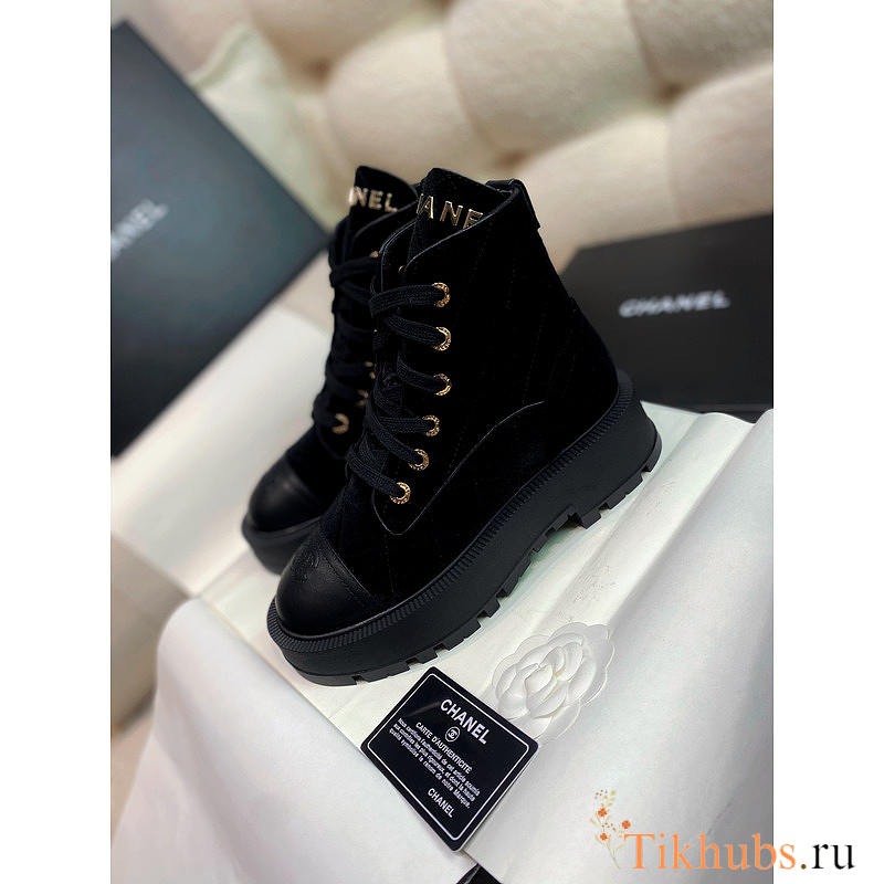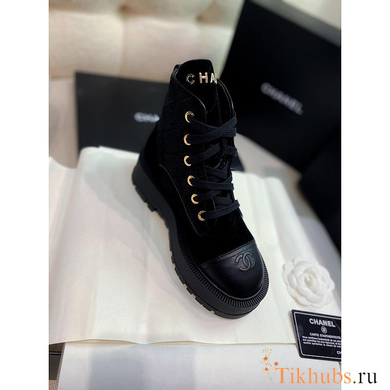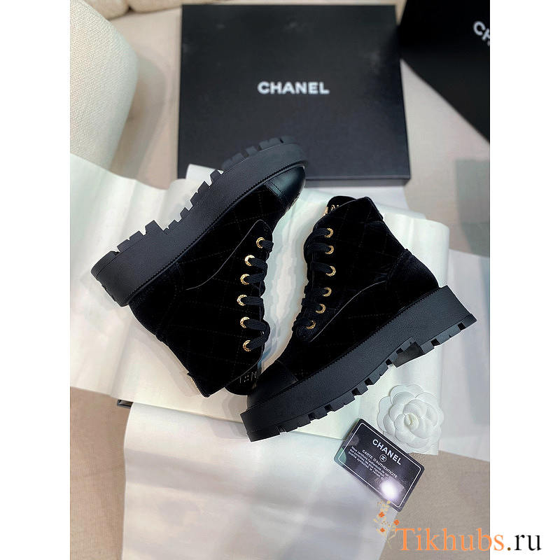 Chanel Ankle Boots Suede Calfskin Lambskin Black