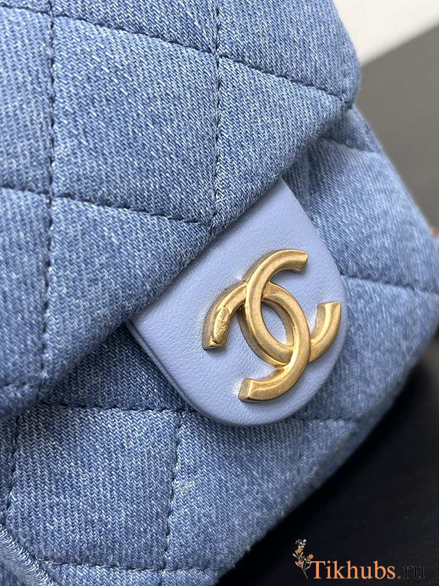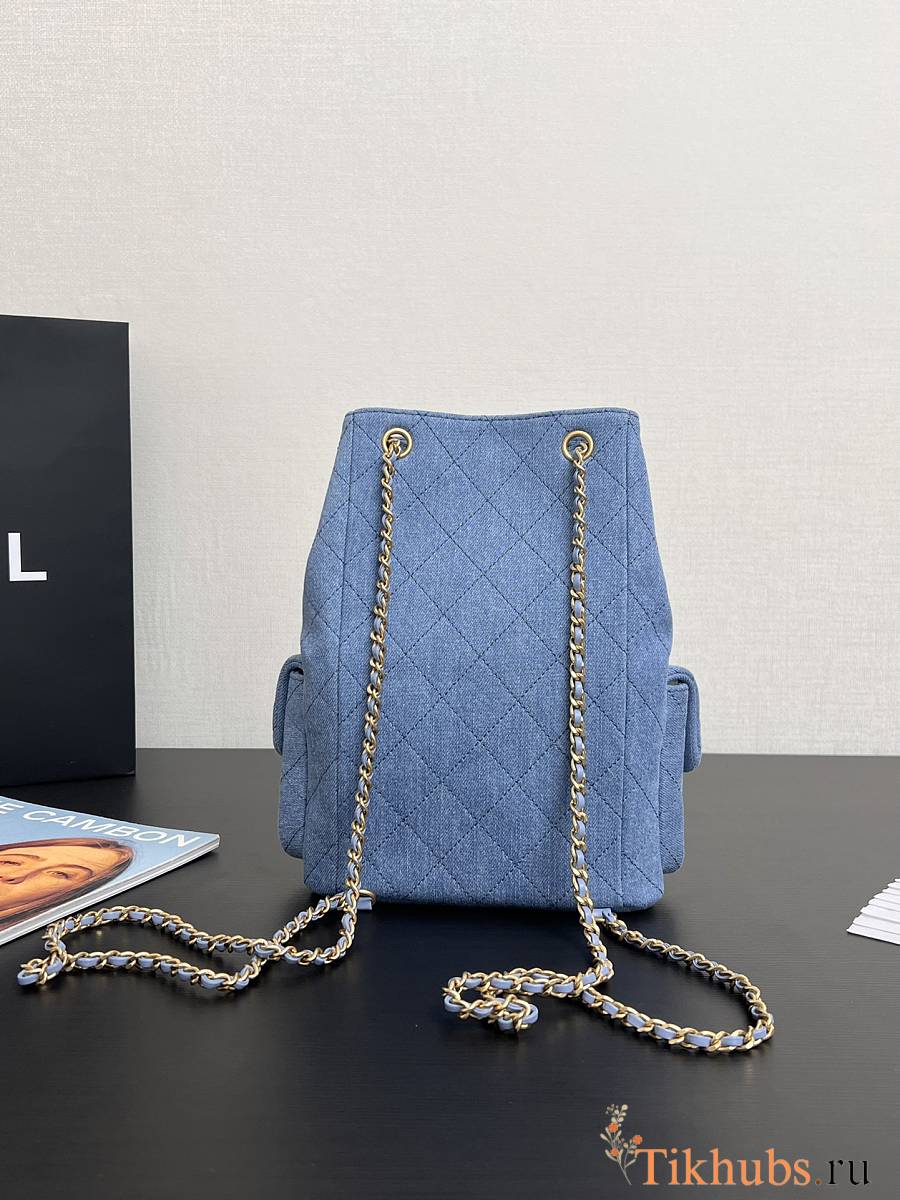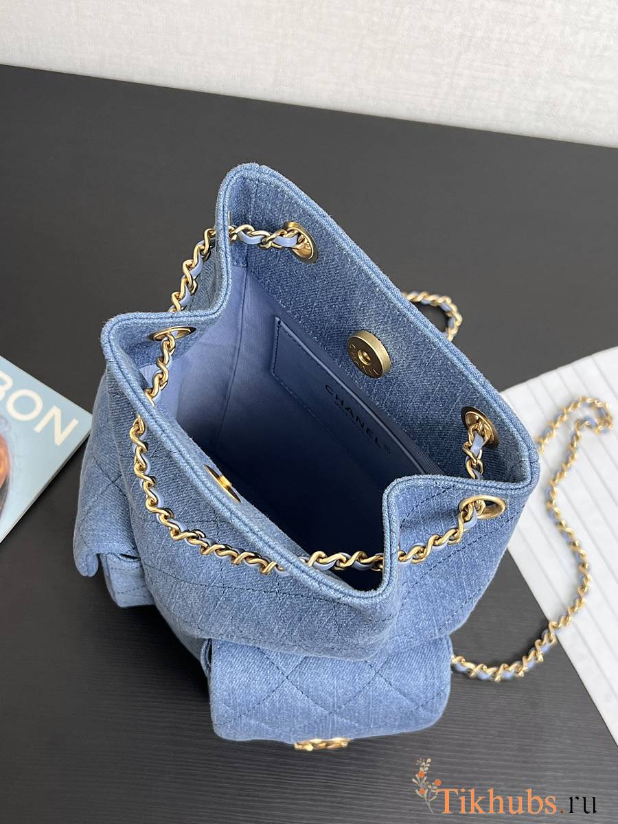 Chanel Backpack Blue Denim Gold 24.5x18x8cm