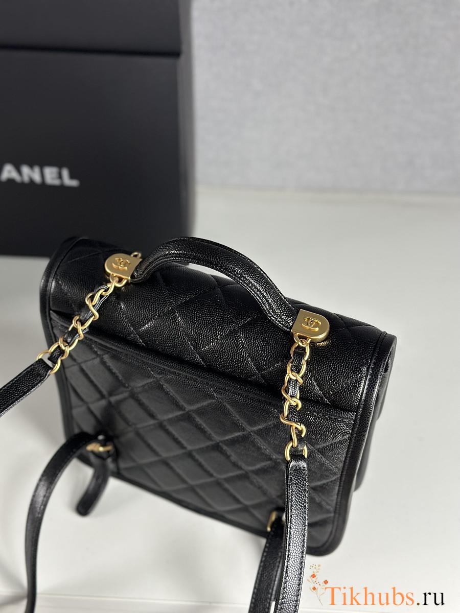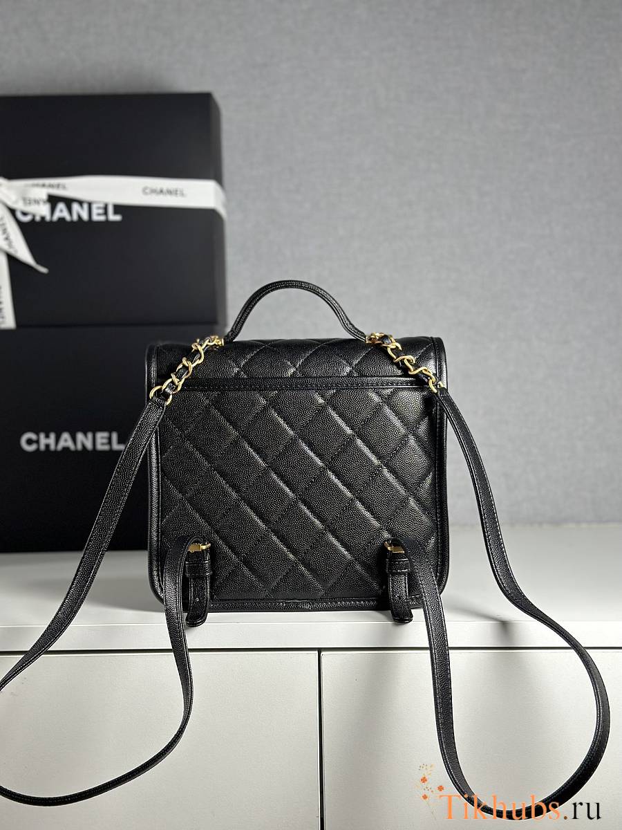Chanel Backpack Caviar Gold Black 19.5x22x7cm