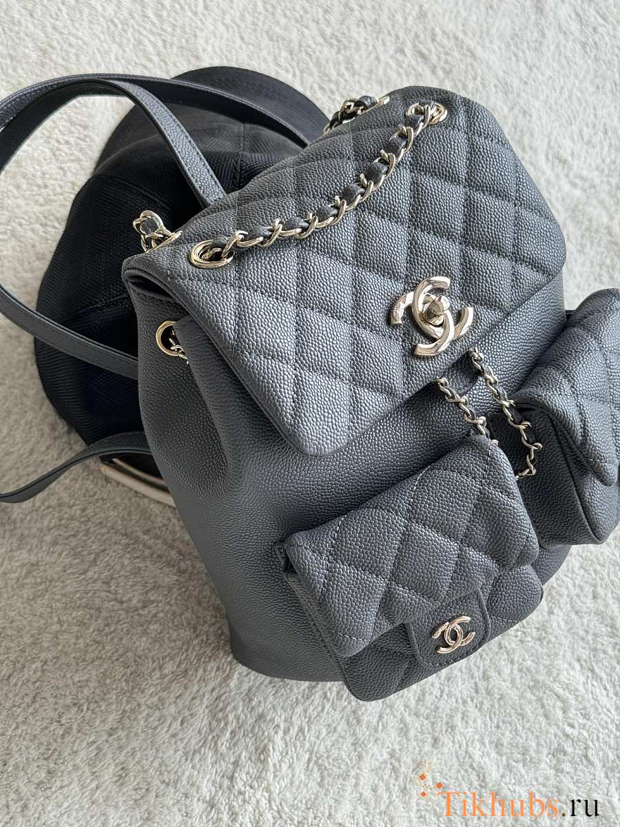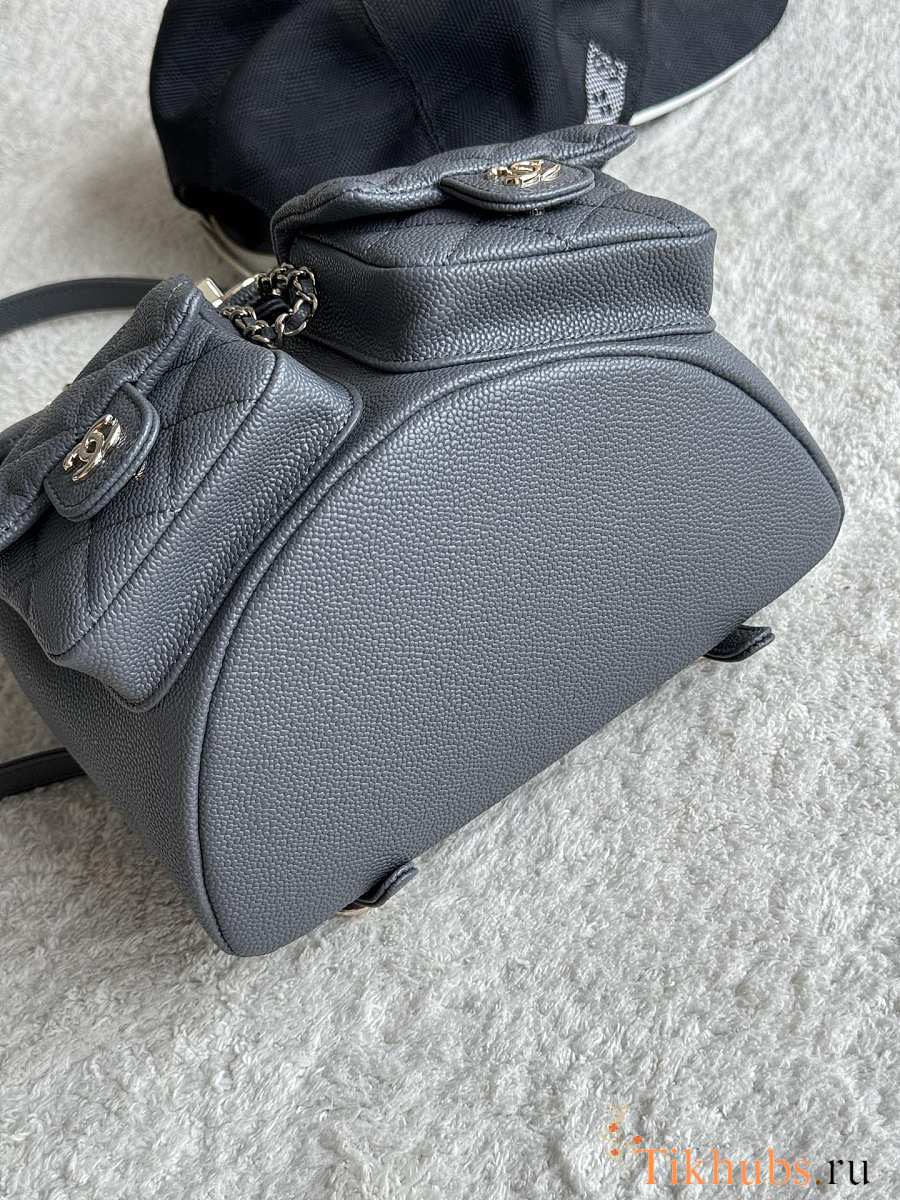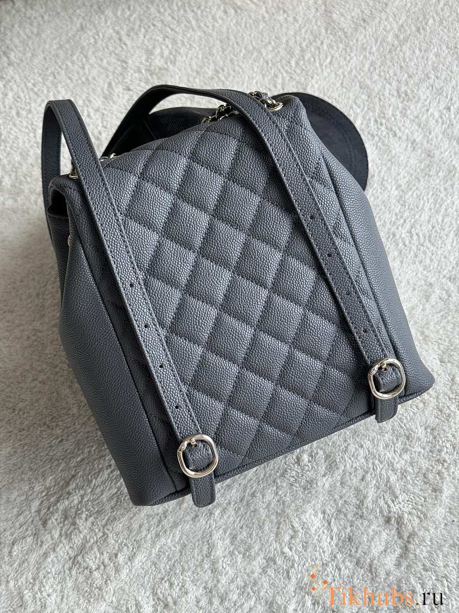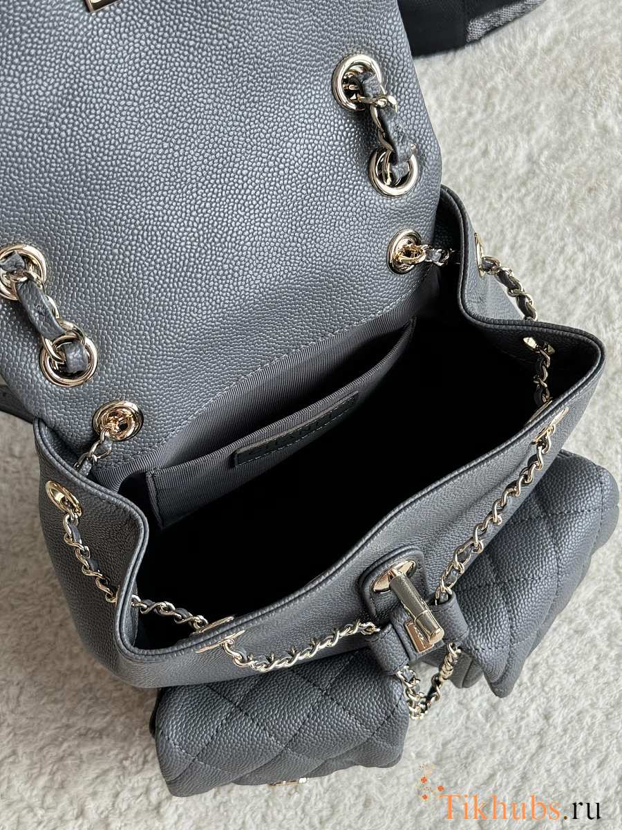 Chanel Backpack Grey Gold Caviar 20.5x20x12cm