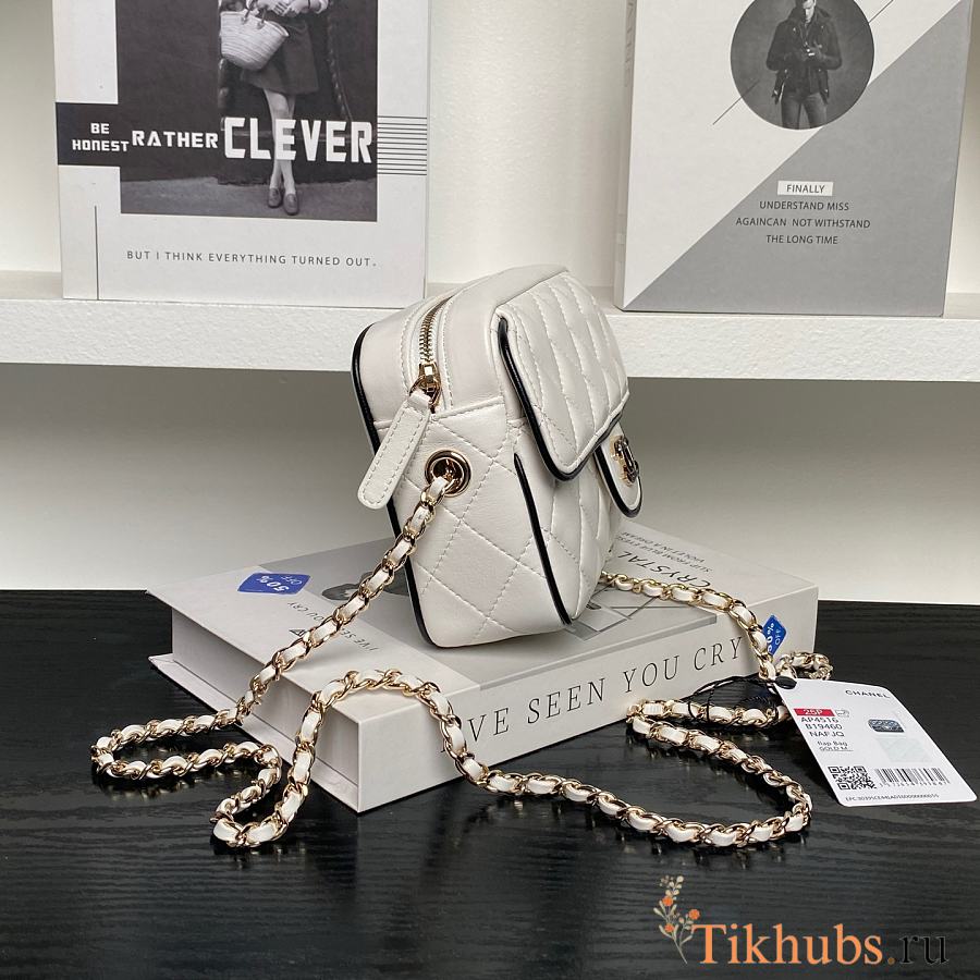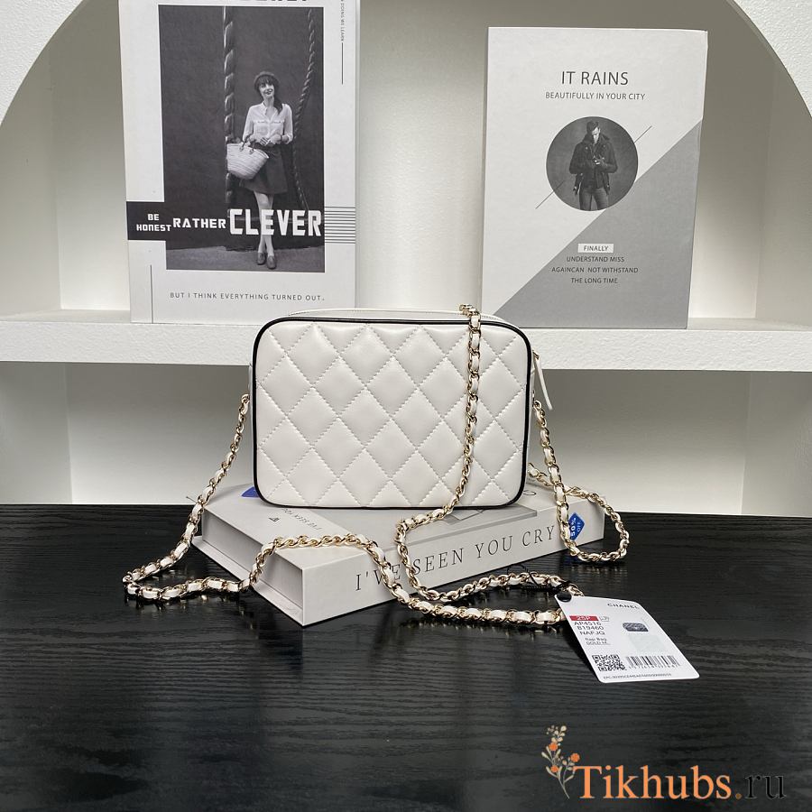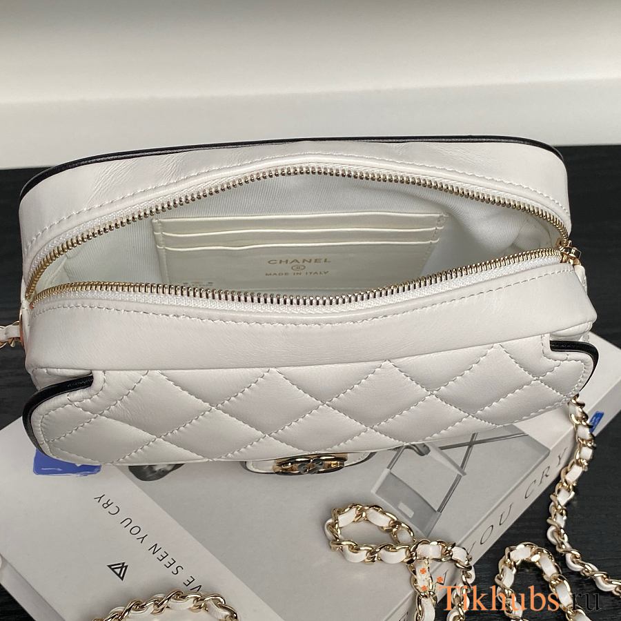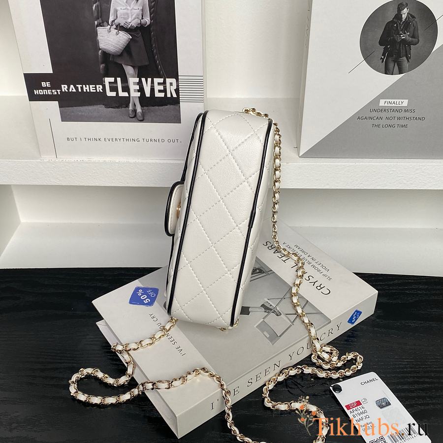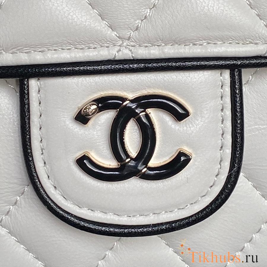 Chanel Bag White Black Lambskin 19.5x12.5x3.5cm