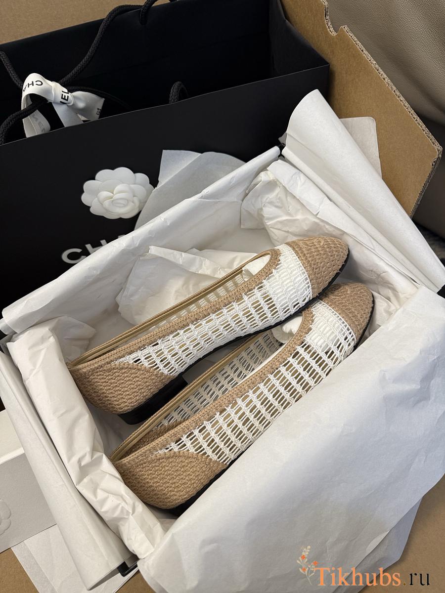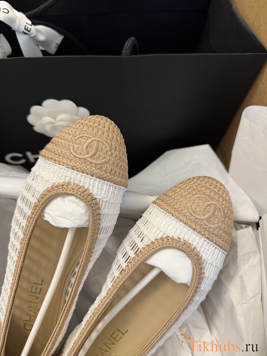 Chanel Ballet Flats Raffia White & Beige