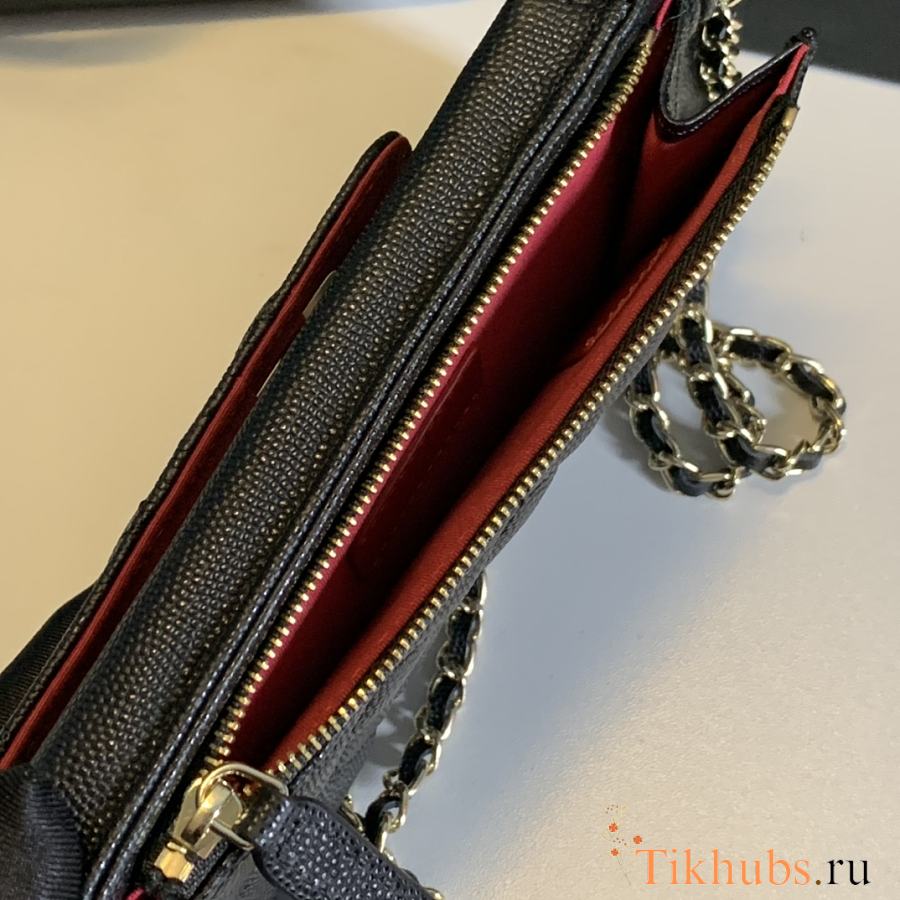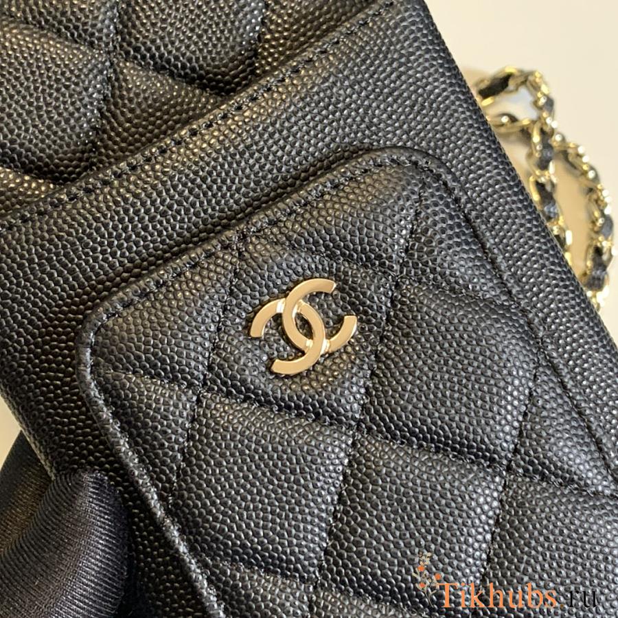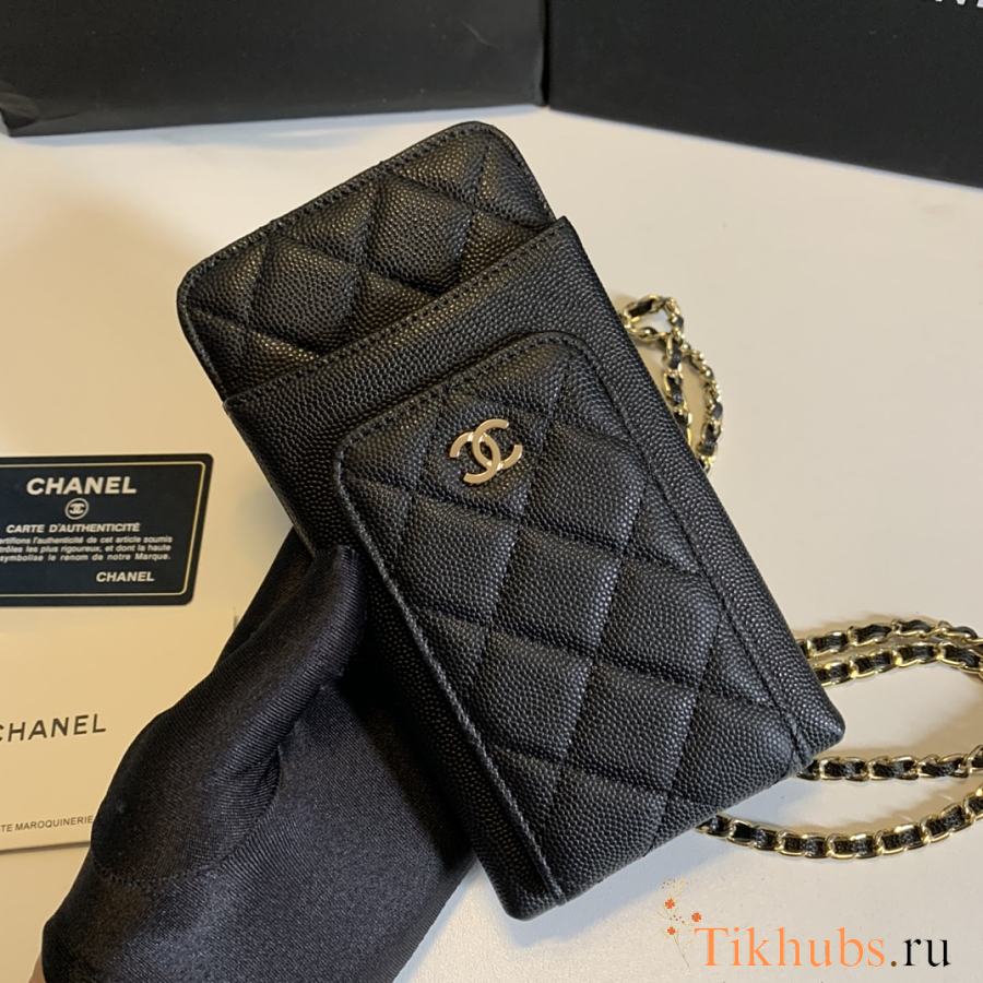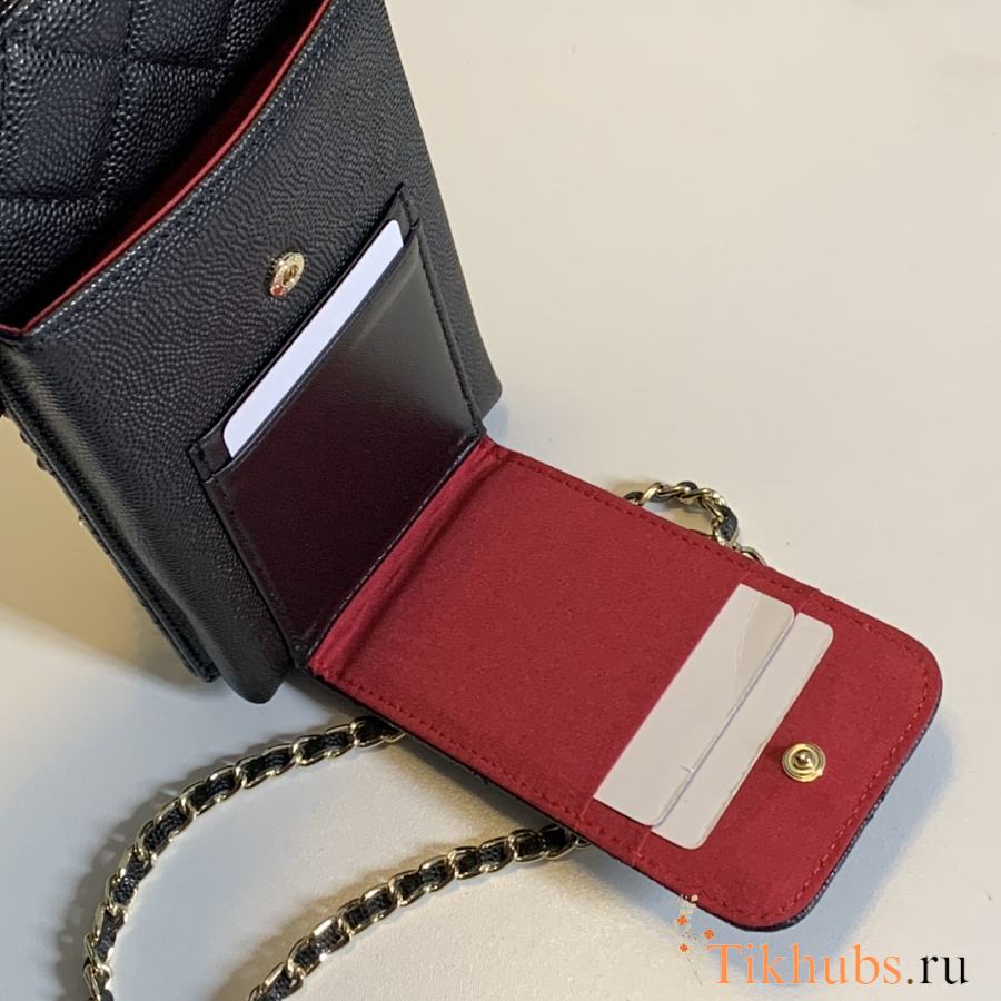 Chanel Black Caviar Leather Phone Holder Crossbody Bag 18x10x2cm