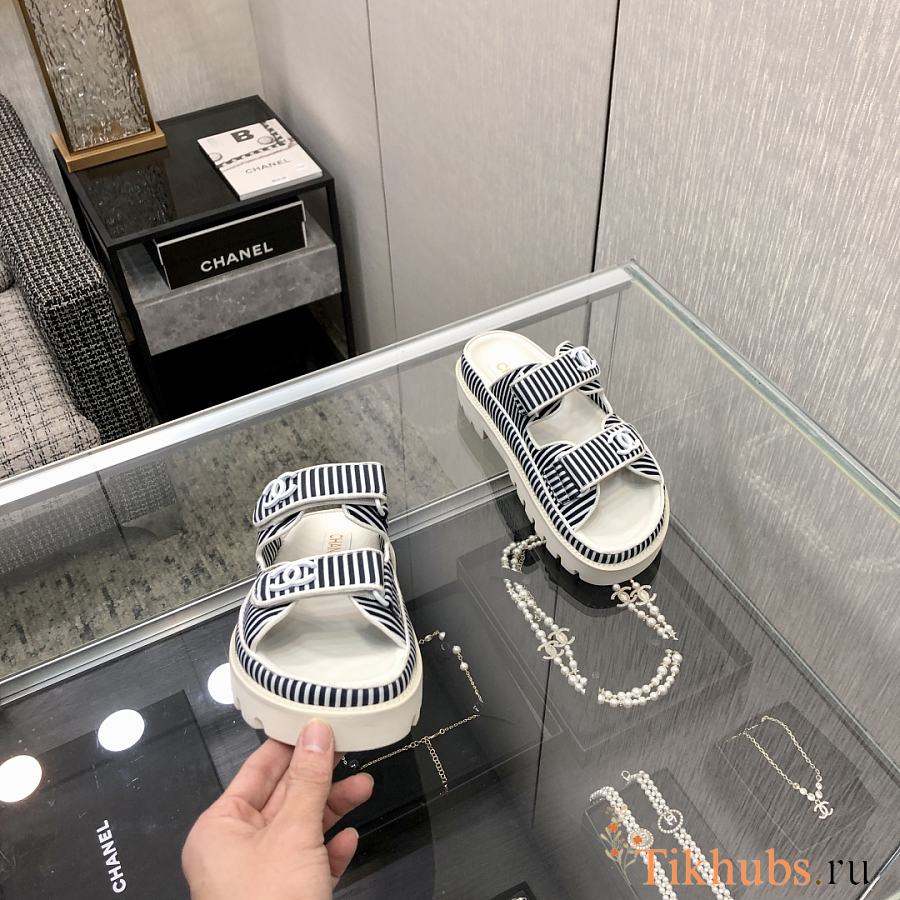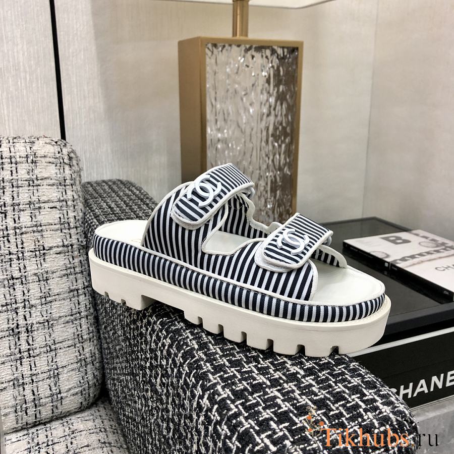 Chanel Black White Sandal Slides