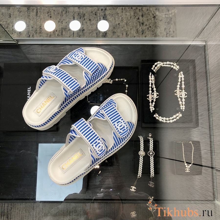 Chanel Blue White Sandal Slides