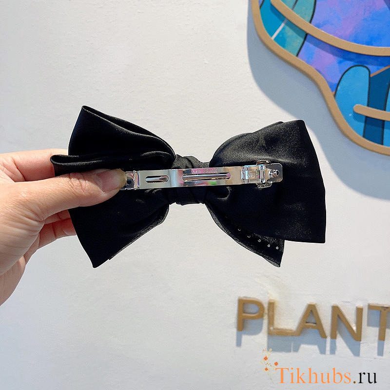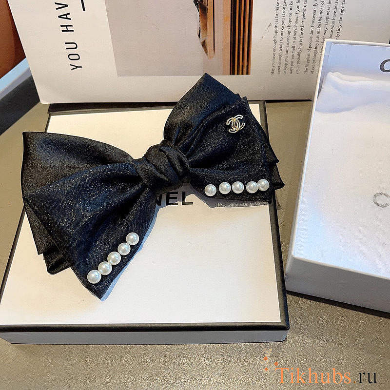 Chanel Bow Hair Clip Pearl Satin Black