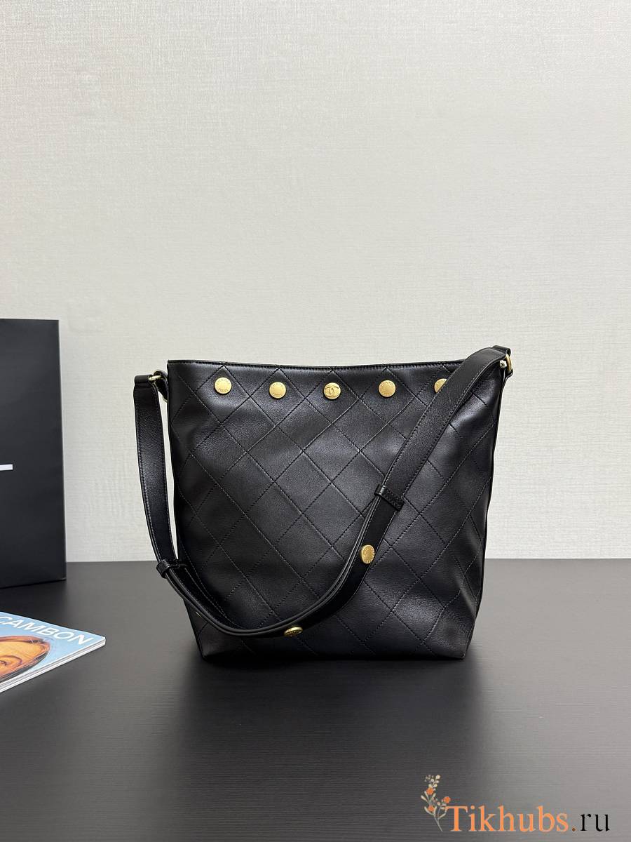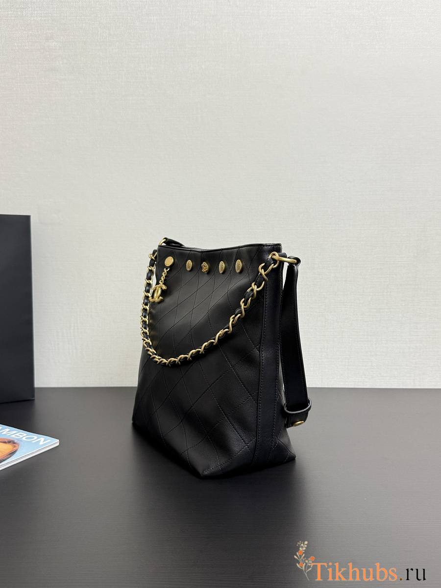 Chanel Bucket Bag Black Lambskin Gold 28x31x15cm
