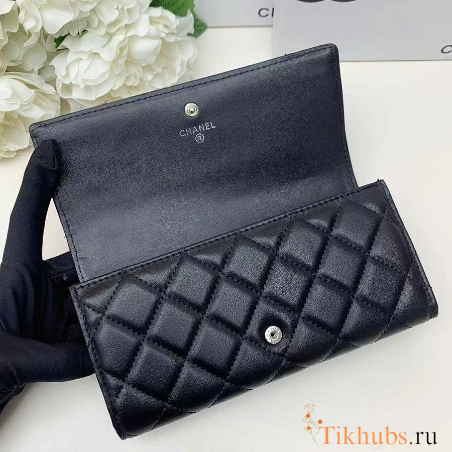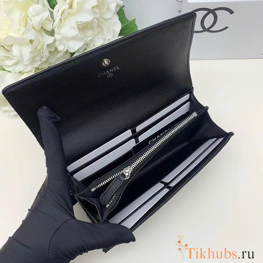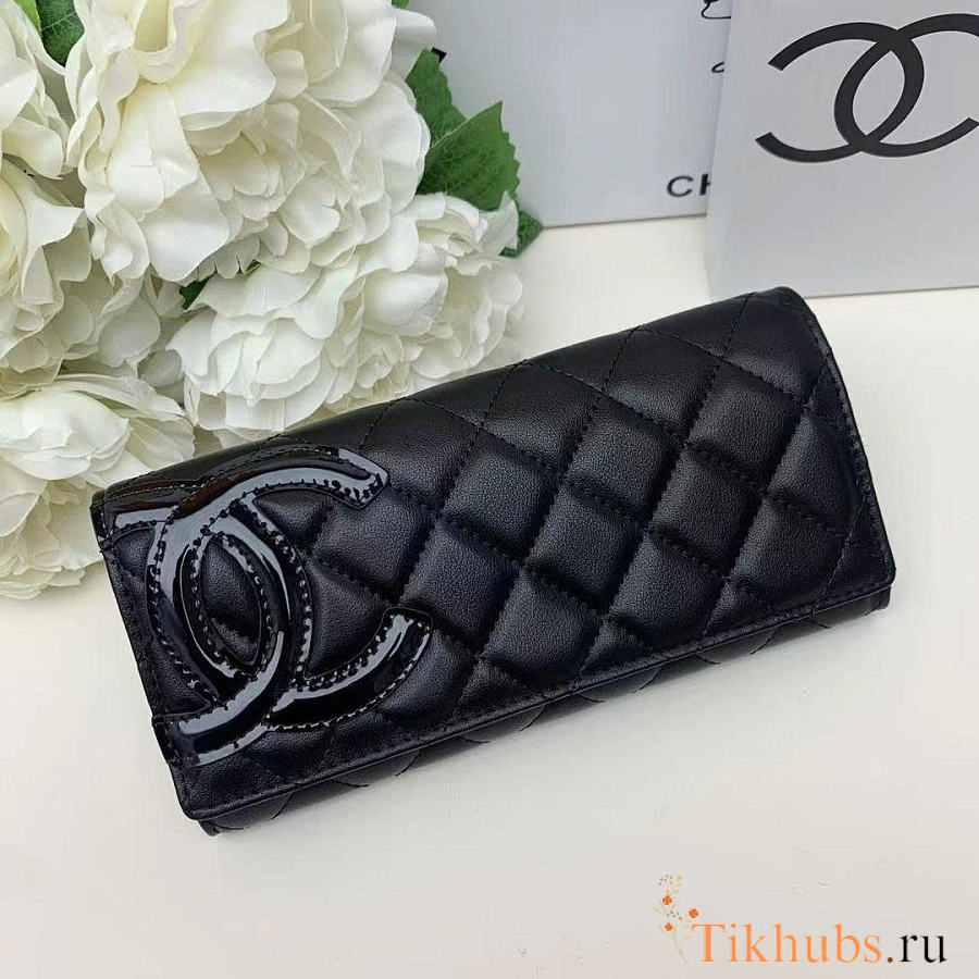 Chanel Cambon Line Long Wallet Black Lambskin 19.5x10x5cm