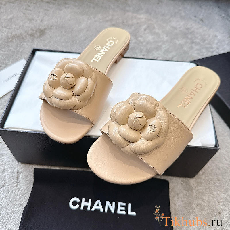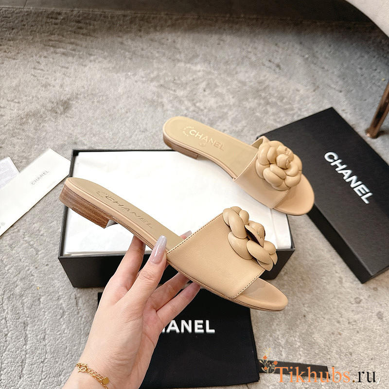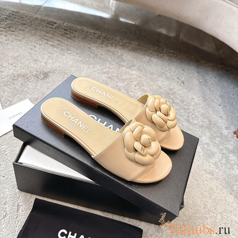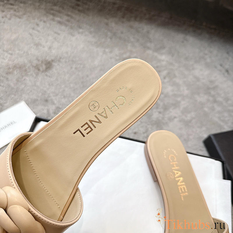 Chanel Camelia Nude Flip-Flops Beige Flesh