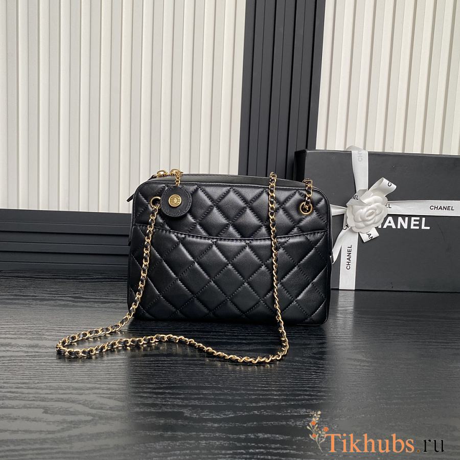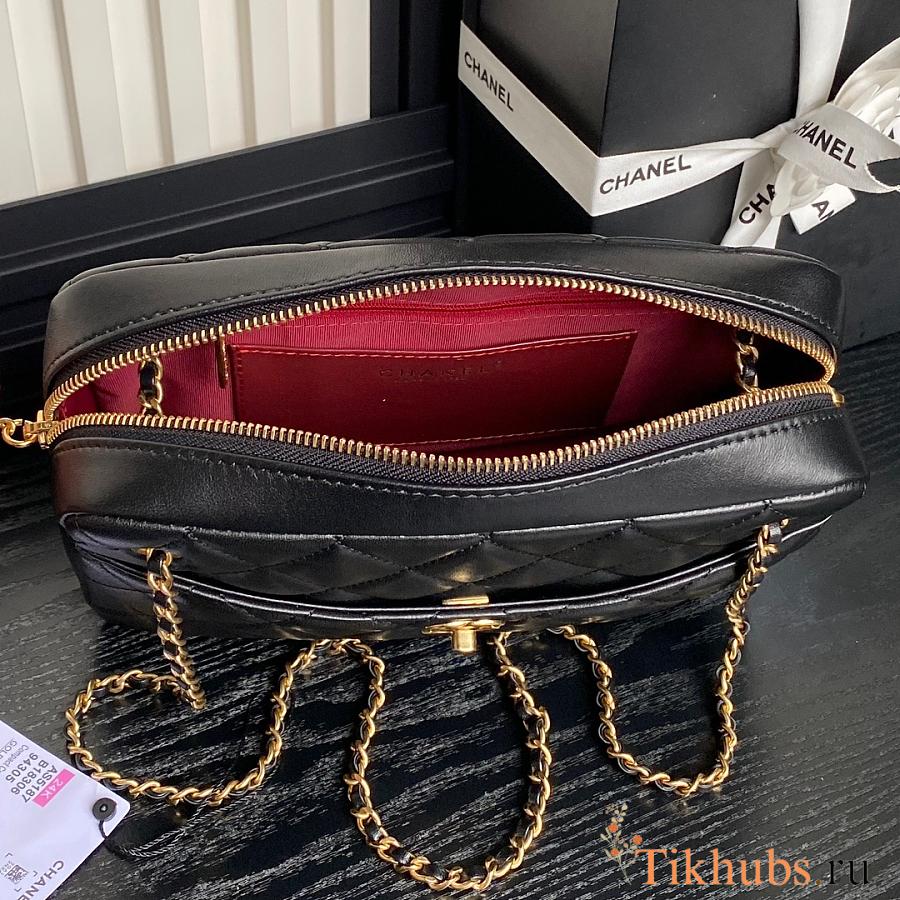 Chanel Small Bag With Handle Black Lambskin 20.5x11.5x5.5cm